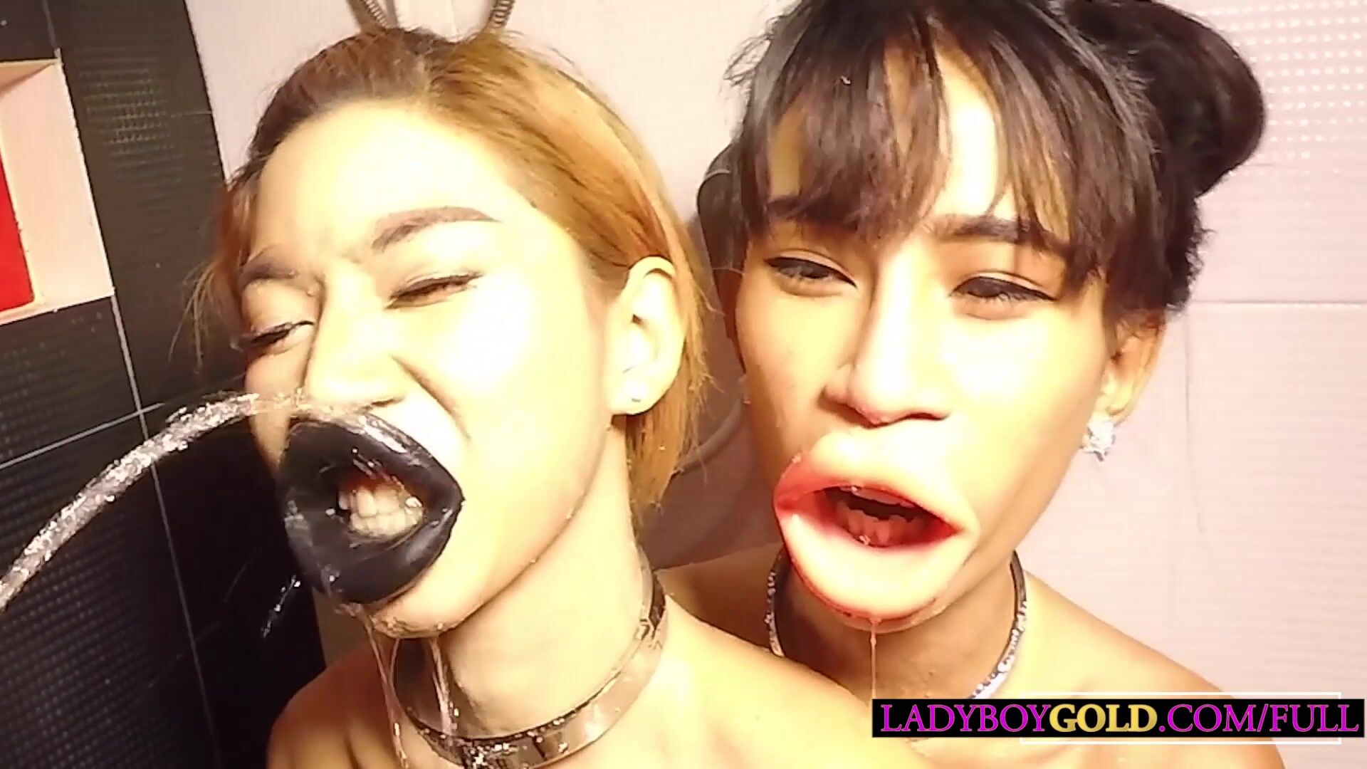 Kinky double piss lips teen ladyboys