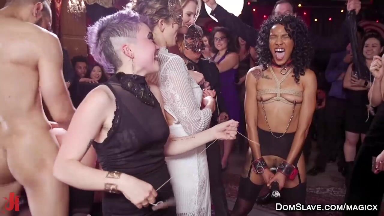 Ebony slave Nikki Darling and huge tits blonde MILF Dee Williams face extreme endurance during the Folsom Eve Orgy and they are rough fucked by a huge black cock of Donny Sins