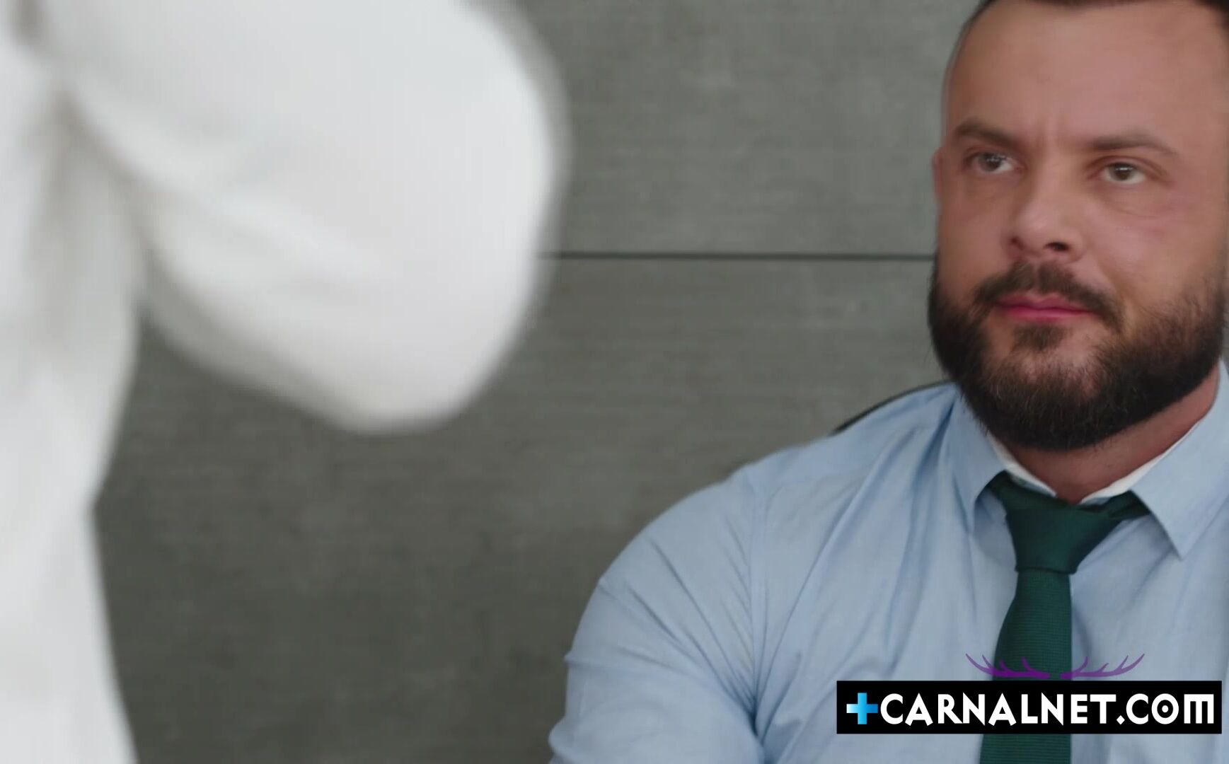 Sir Peter unbuttons his shirt to reveal his hairy chest and Bastian Karim on his knees pulling down his pants to see that deliciously thick uncut cock spring up from the waistband Peters hand comes behind Bastians head as he asserts his dominance