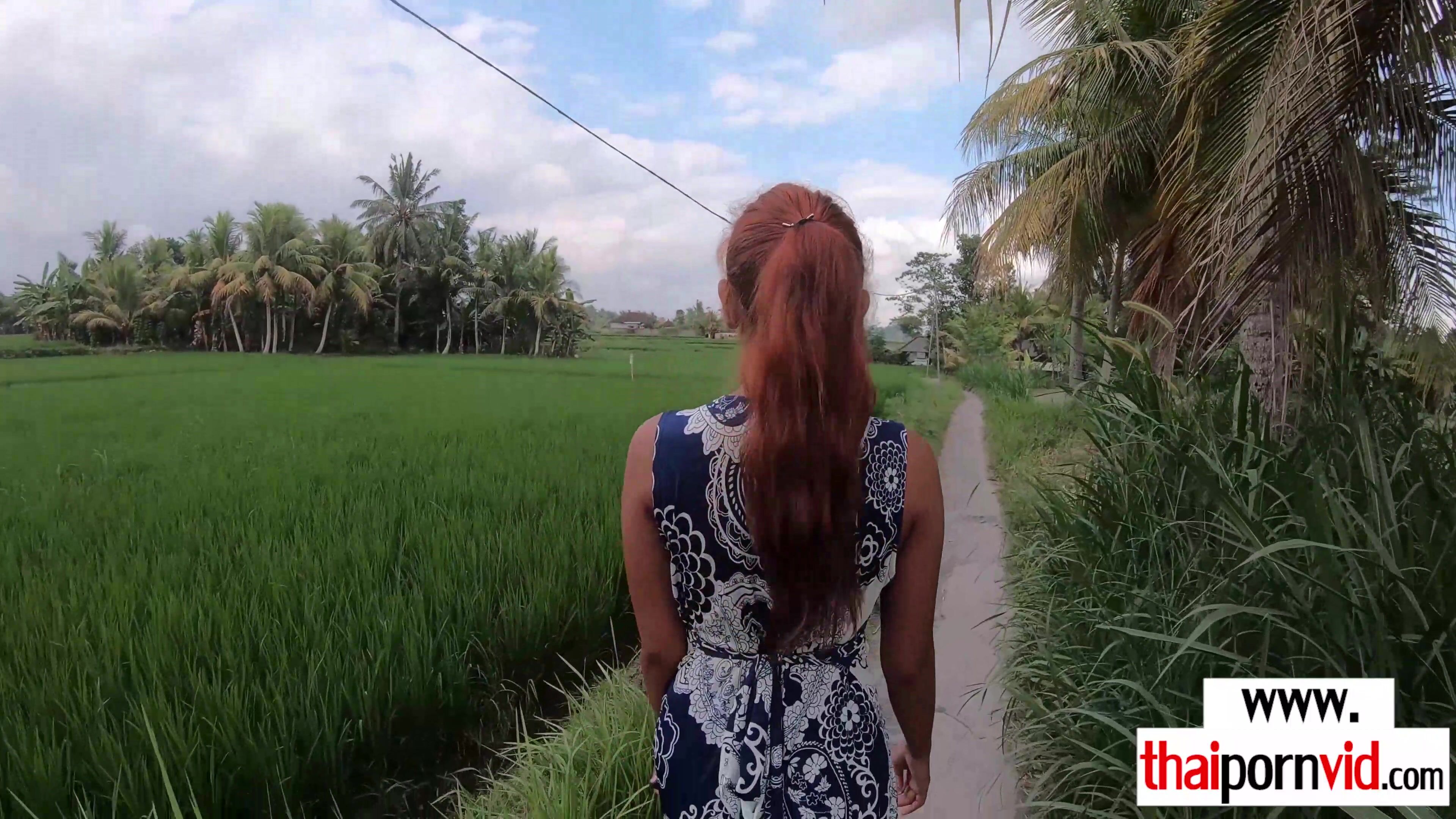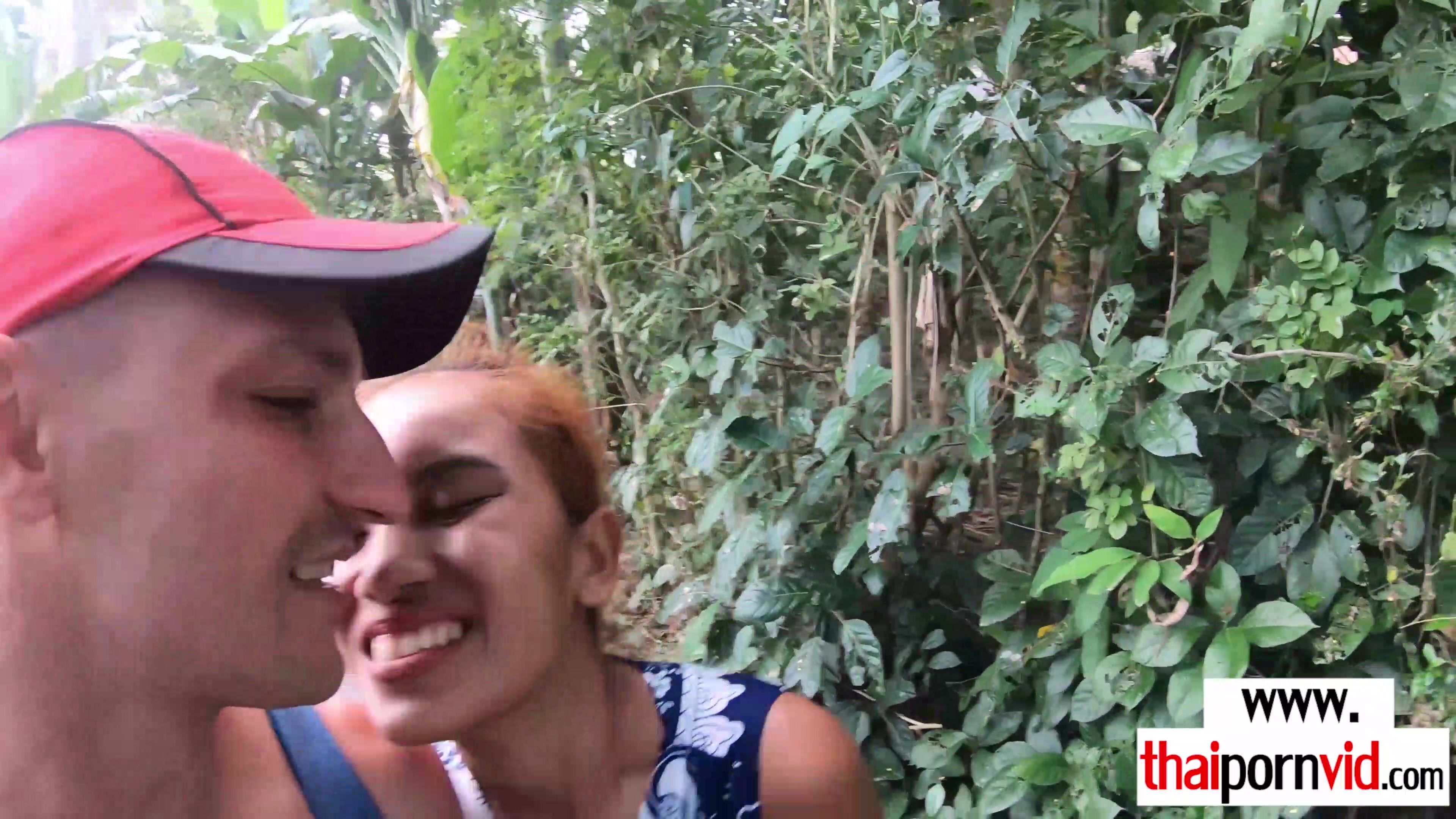 Petite amateur Thai teen with small tits takes a small trip with her european lover The fresh air makes him horny so they stop by a bench and she has to suck his big white cock outdoor then he is licking and fucking the juicy asian pussy
