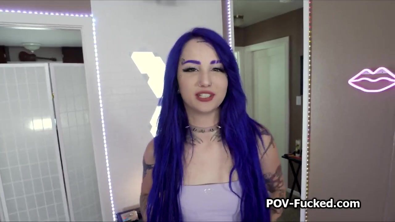 Deep POV oral by blue haired spinner hottie