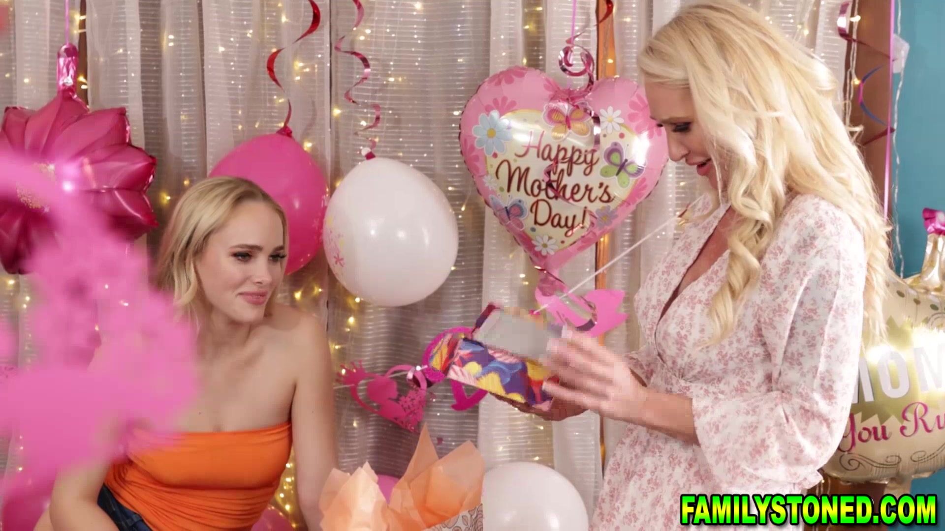 Stepmom and stepdaughter enjoying creamy load