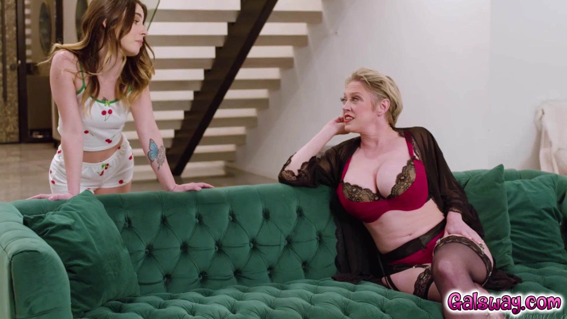 Finally, Chanel goes to talk to Dee but is surprised to find her in sexy lingerie. Chanel stares for a moment, growing warm, but then makes her presence known. Dee is a bit flustered and admits that her husband STILL isn't paying much attention to her