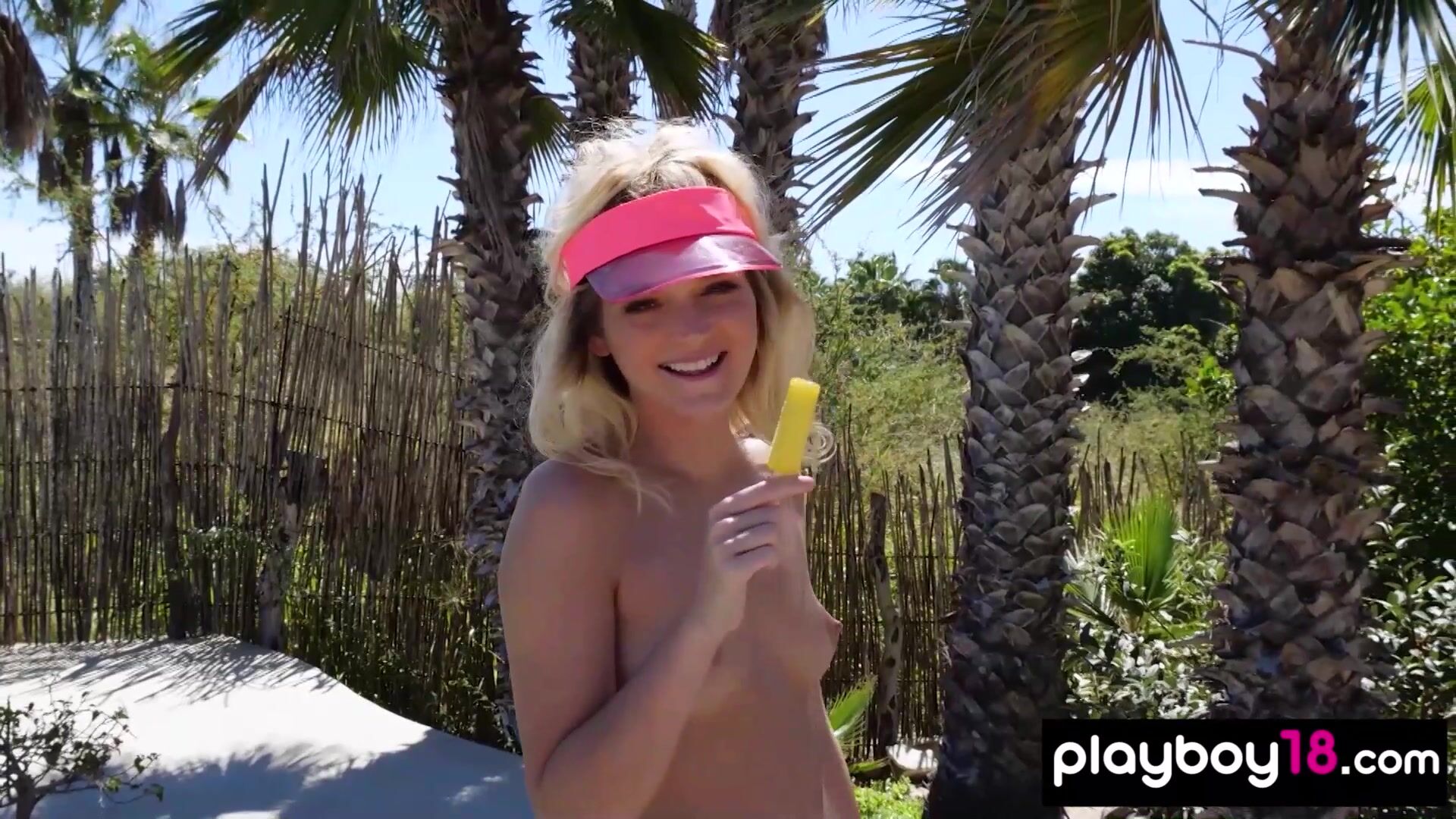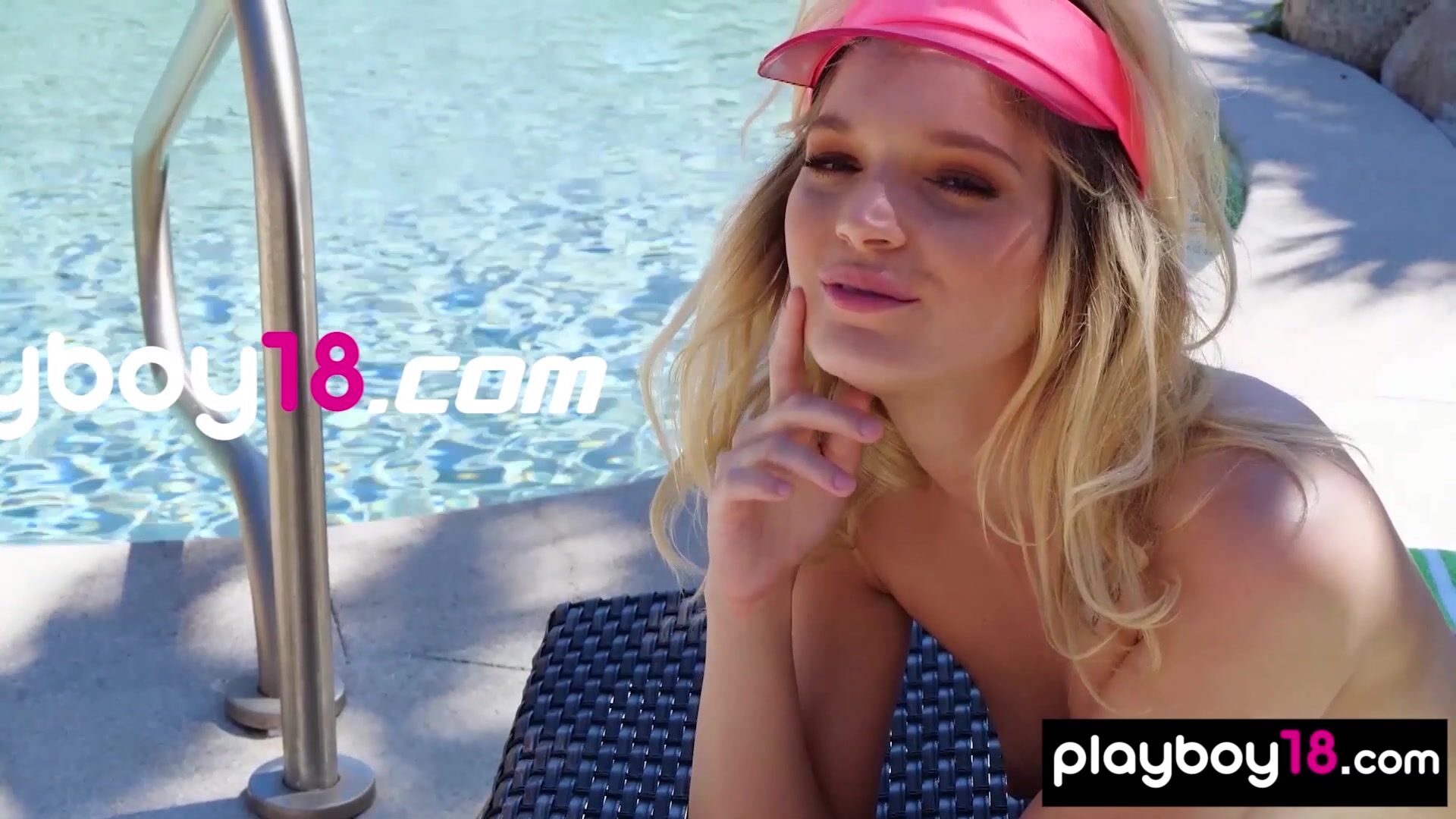 Petite blondie with small boobs named Kylie Belle takes off her bikini and goes to the pool to soak up the sun She is enjoying her Playboy experience so The smiling babe posing and introducing her shaved pussy outdoor