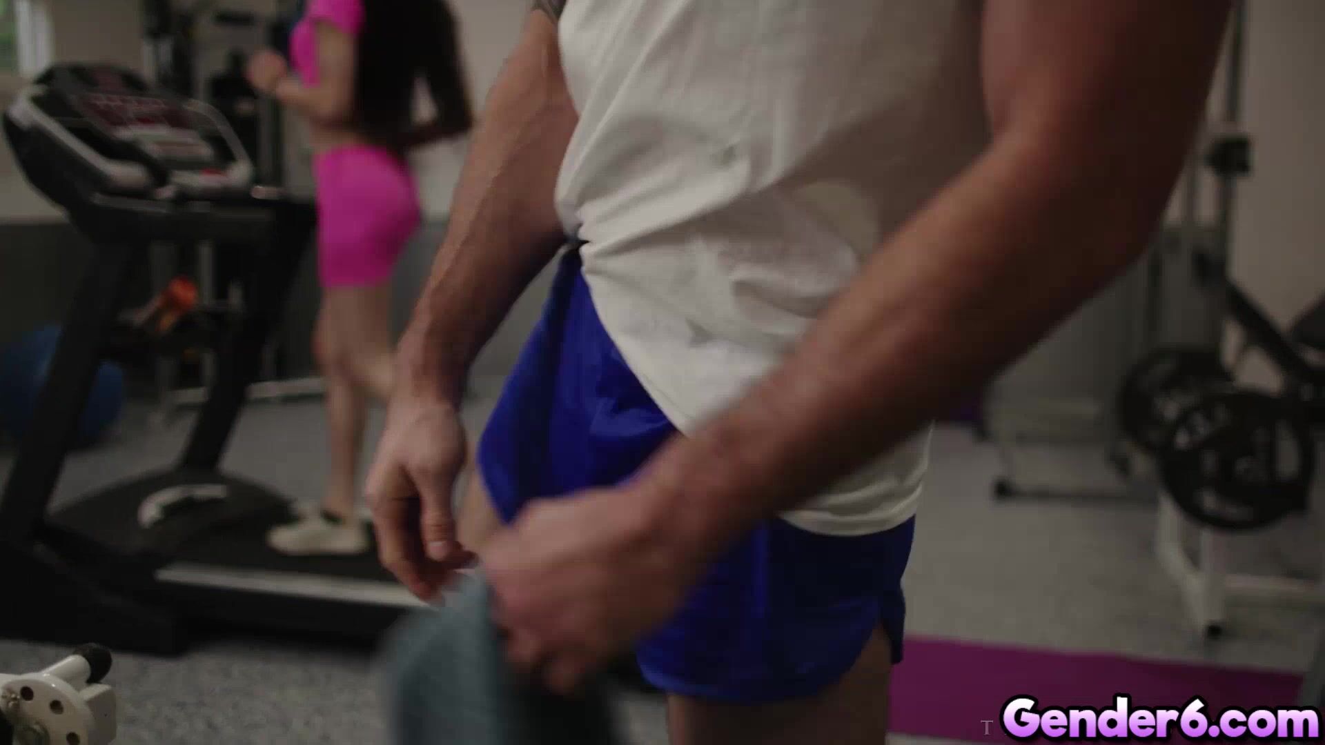 Sexy transgender Ariel Demure goes to gym when hunky Cliff Jensen came and saw how sexy Ariel is. He got horny and began sniffing and licking Ariel ass. And of course Ariel likes it so she blow Cliff dick down to her throat. Cliff fucked Ariel in different position until he blast his white cum