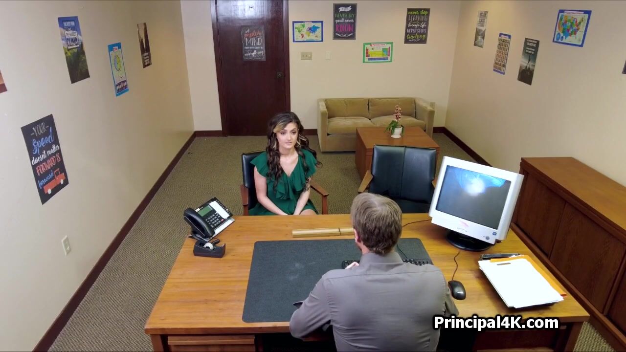 Mrs Harper is in Principal Ryan's office. Her offspring has done some really bad things and she is here to make everything right.. using her pussy!
