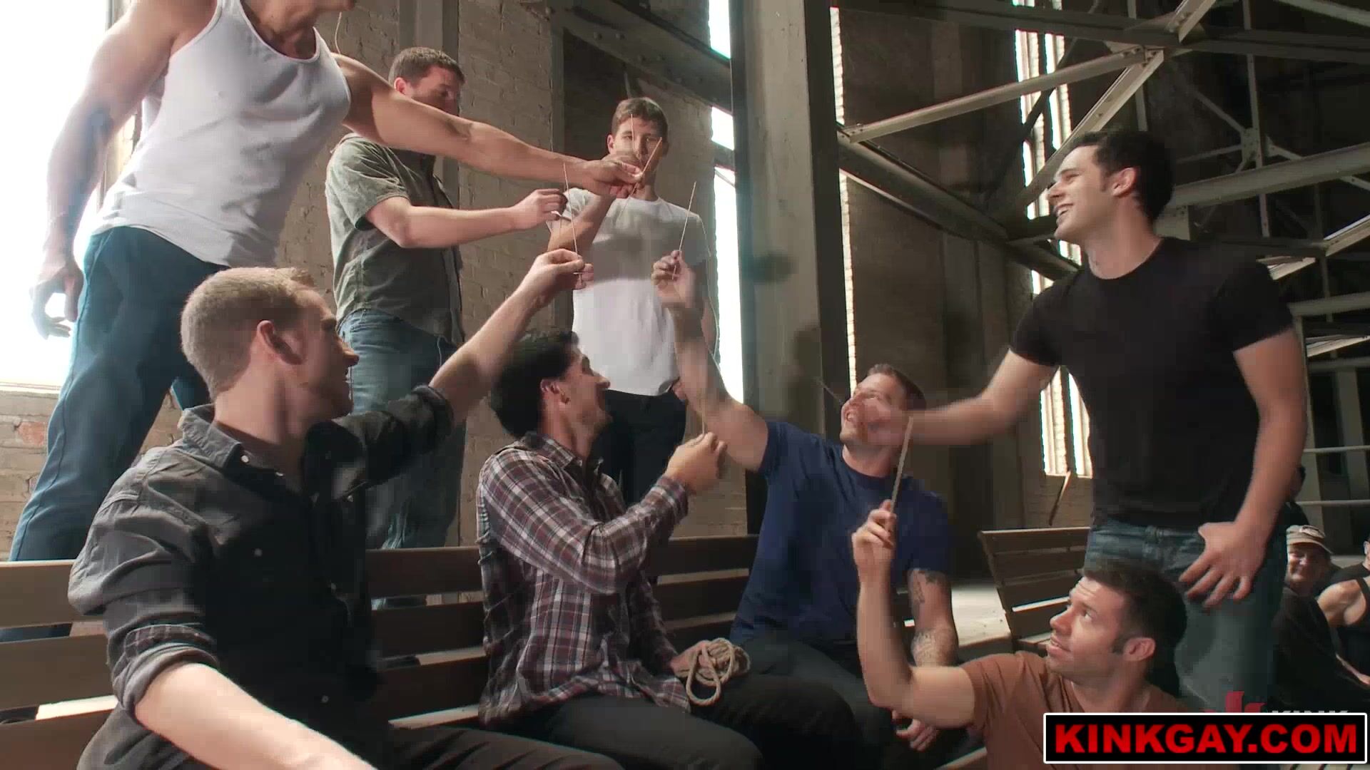 C'mon guys! Jump him, tie him up, and strip him down!