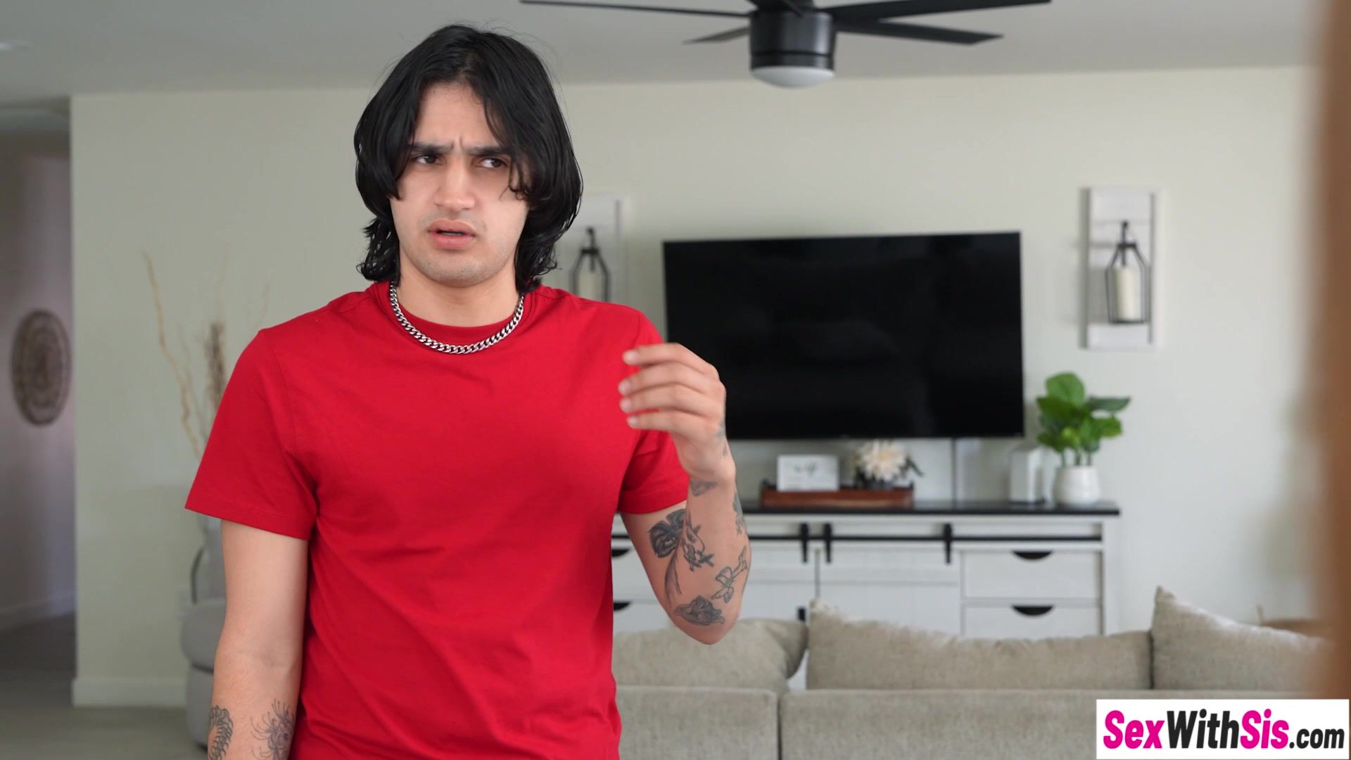 Dark Haired in a crimson sundress luvs to make enjoy with folks and chicks and enjoys 3 ways