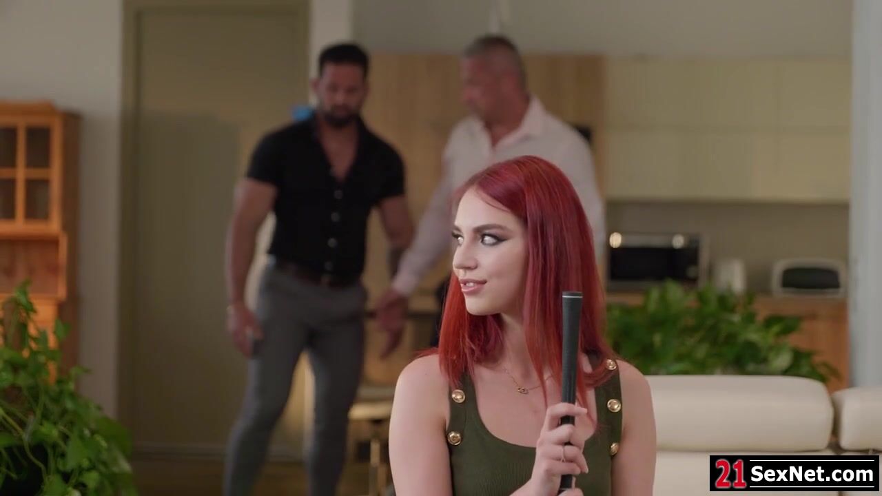 Leya Desantis gets naughty on her office workers.She calls them and have them get naked.The lady boss is giving one blowjob while the other is licking and fingering her ass.Wanting for more,she lets them fuck her at once, penetrating her ass and pussy