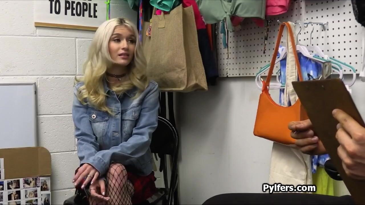 Blonde spinner Emma tried to steal a really expensive item at the mall. But she got busted and now she faces the officers big dick!