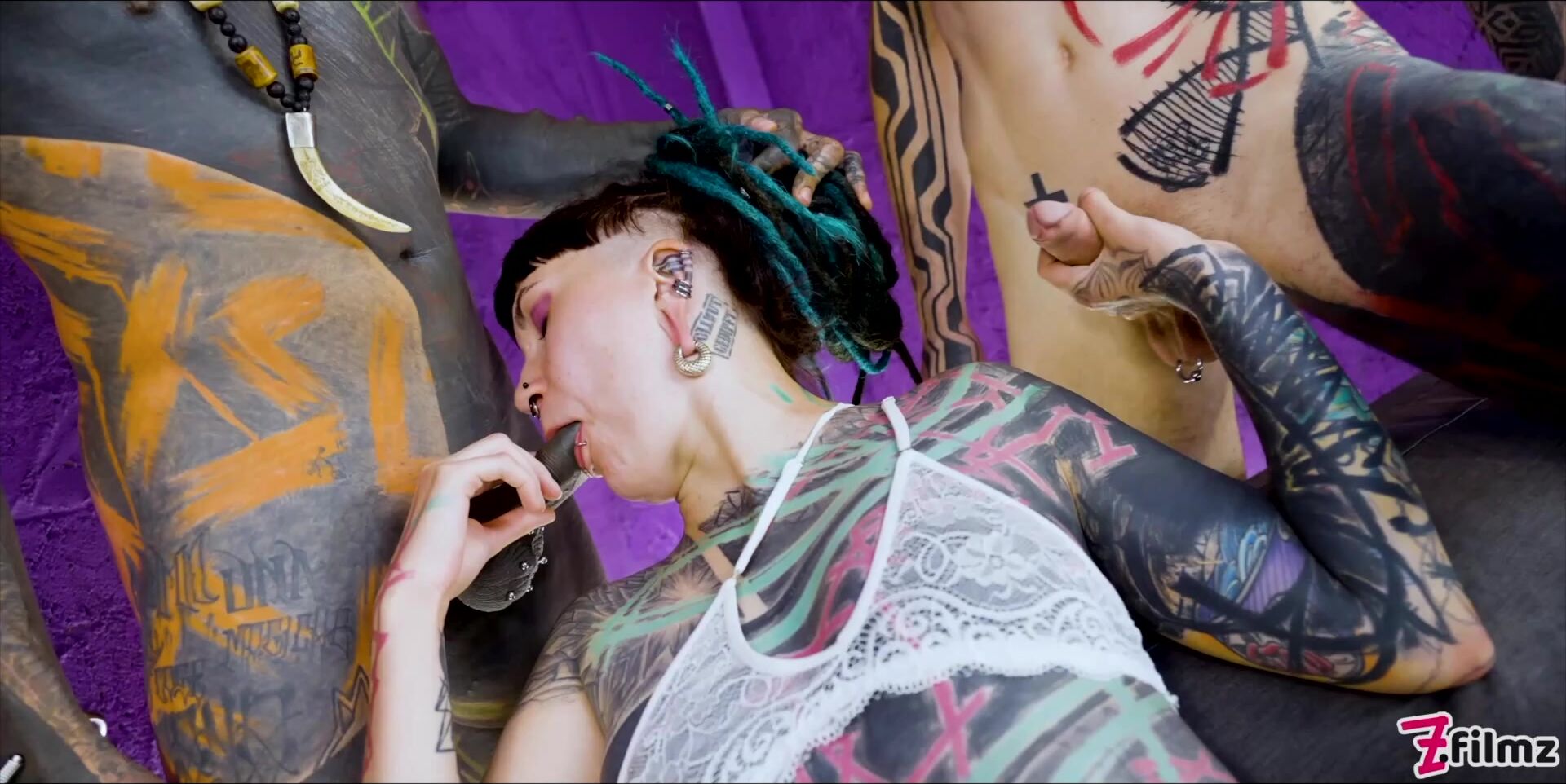 Tattooed Illuz in a rough anal threesome