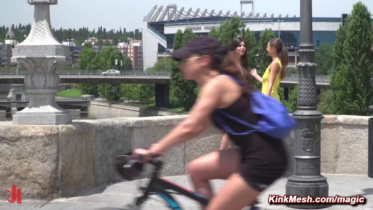 Submissive teen Anya Krey is led through Madrid by mistress Tina Kay on a leash and collar then brought to bar where she is [censored] and fucked by big cocks of Antonio Ross and Steve Holmes