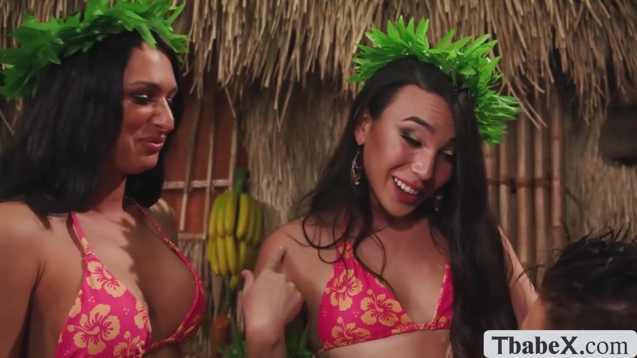 Handsome dude is stranded in the island and he meet two gorgeous TS Khloe Kay and Kasey Kei.They let him rub their tits and then suck their hard shecocks passionately.In return,they let him bareback their asses and go to Tgirlztube.com for discount.