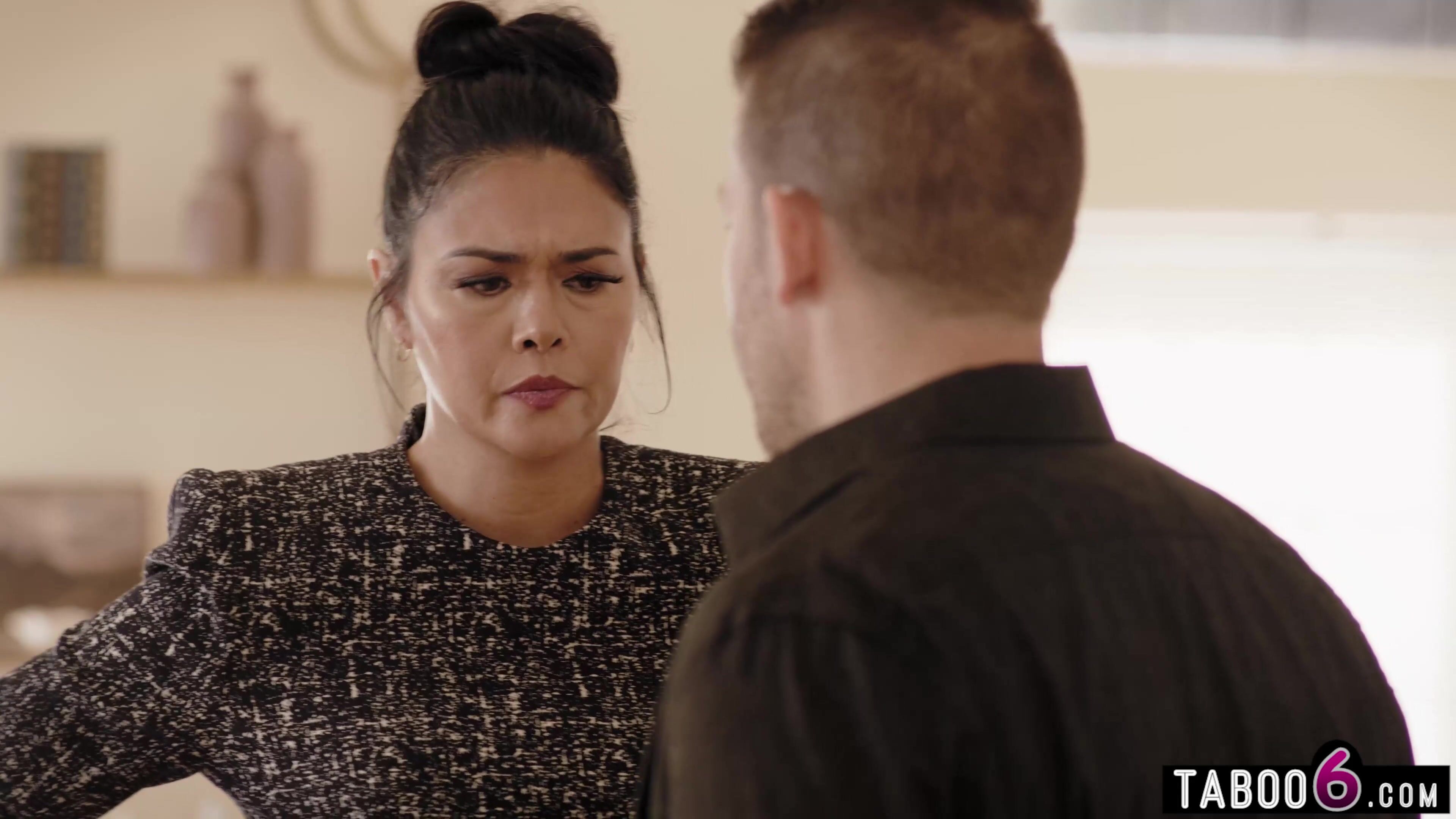 Big boobed MILF calming down stepdaughters husband