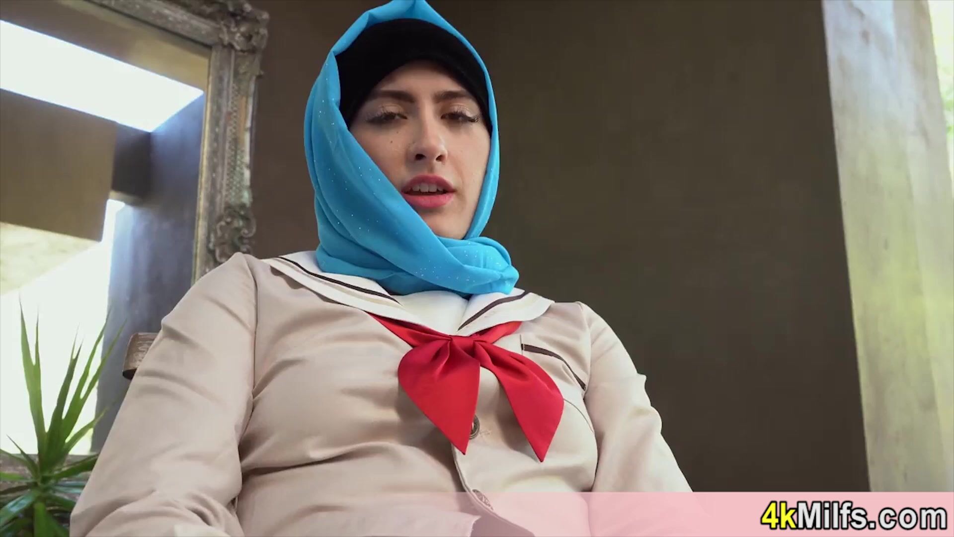 Hijab Intercourse - Hijab-Dressed In Bombshell Madi Laine In SeeThru Figure Suit Arches Over And Unveils Her Twat