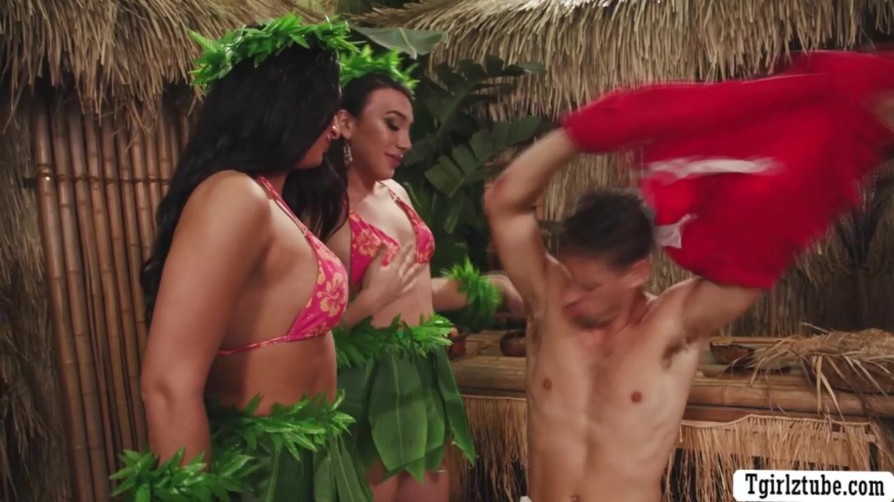 Two busty TS found a guy in the island where they got stranded.They offer the guy food and they suck his hard big cock passionately.In return,the guy bareback fucks their wet ass so deep and go to Tgirlztube.com for discount and more.