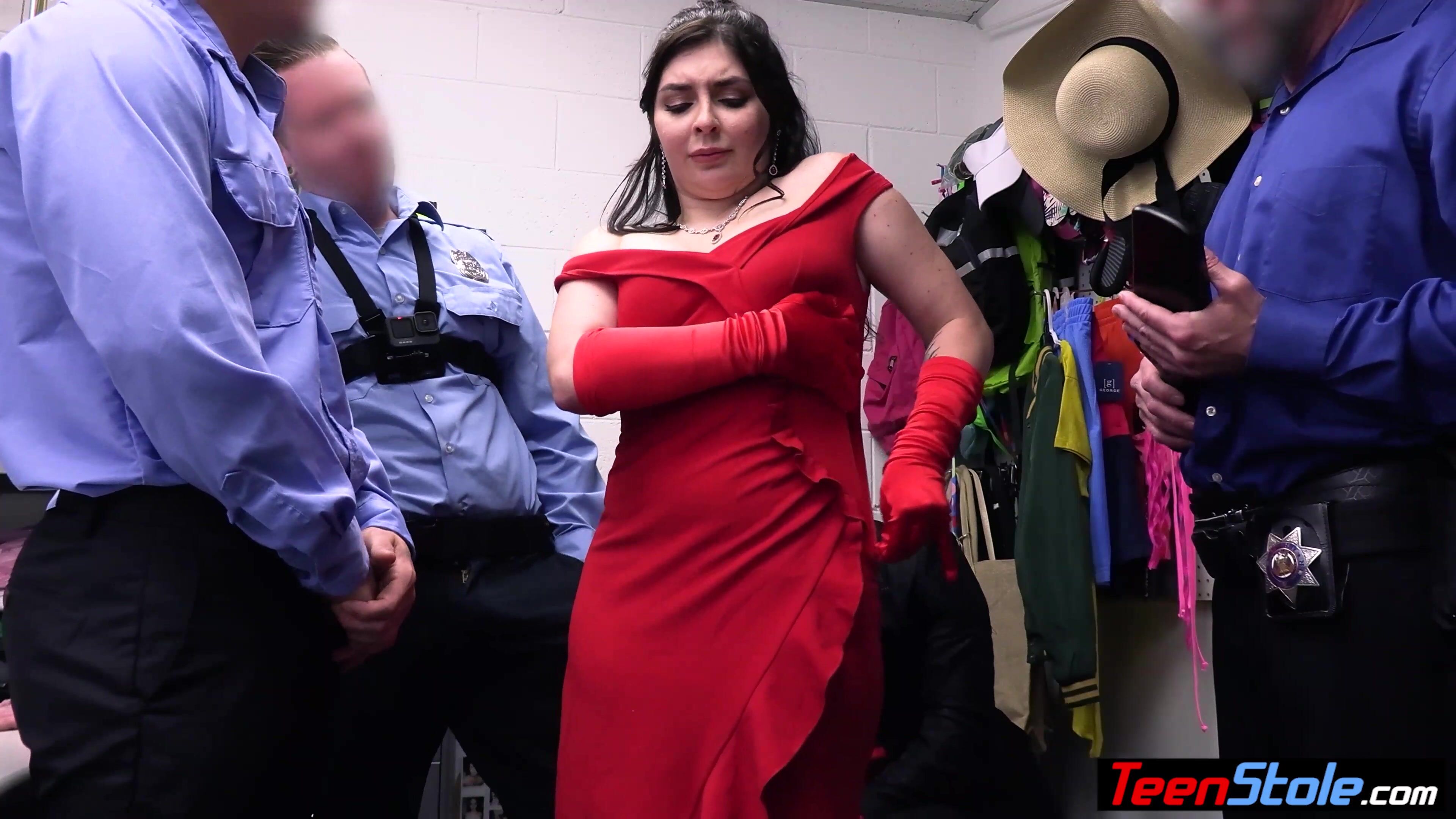 Hot teen stepdaughter Keira Croft and her stepdad are stealing wallets and money from the casino but they get caught by three security guards They order her to suck and bot of them and her stepfathers big dick too exchange their freedom