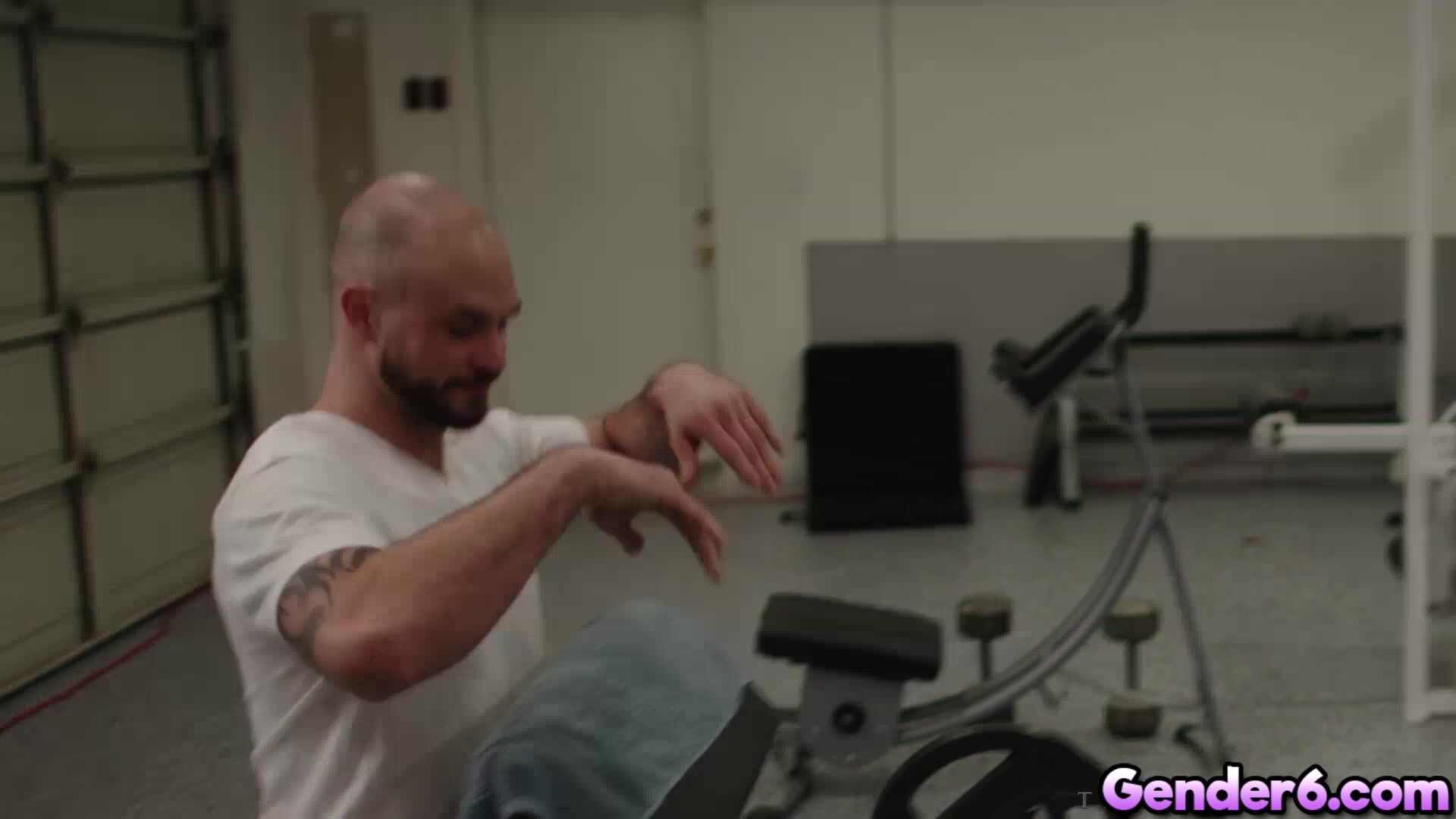 Sexy transgender Ariel Demure goes to gym when hunky Cliff Jensen came and saw how sexy Ariel is. He got horny and began sniffing and licking Ariel ass. And of course Ariel likes it so she blow Cliff dick down to her throat. Cliff fucked Ariel in different position until he blast his white cum