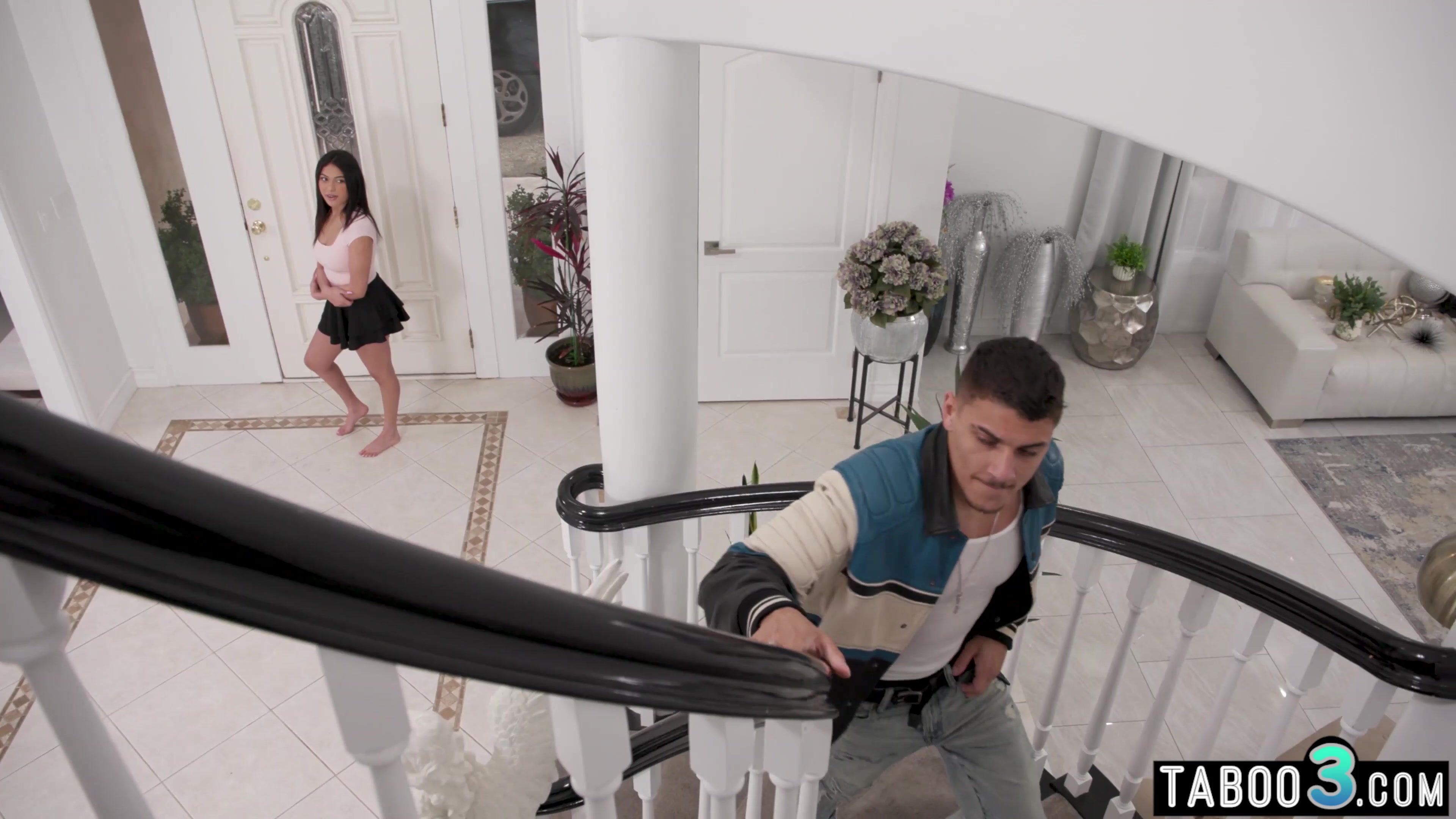 Hot blonde MILF stepmother Alexis Malone with big boobs seducing her stepdaughters lover She is sucking his big cock then hops onto it when the naughty latina Reyna Belle comes and starts masturbating next to them