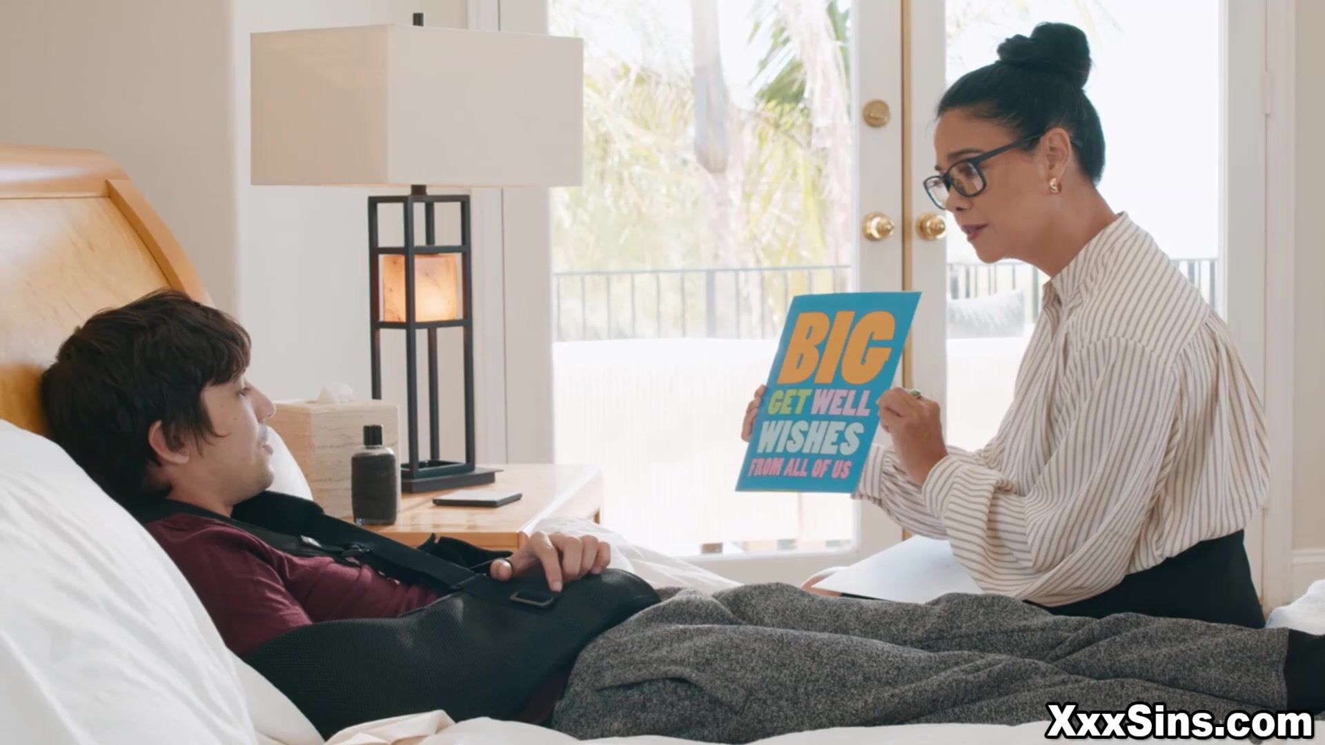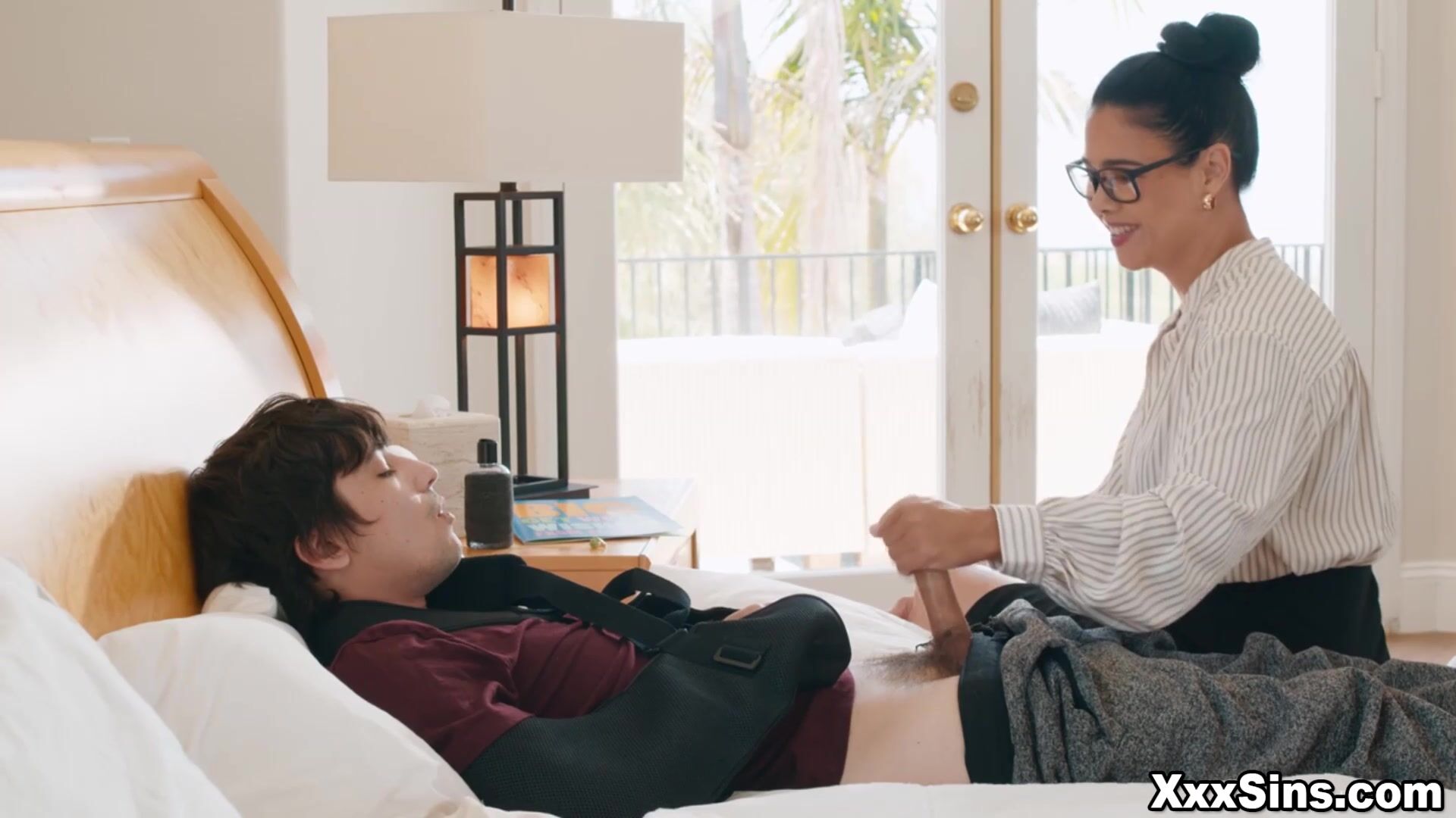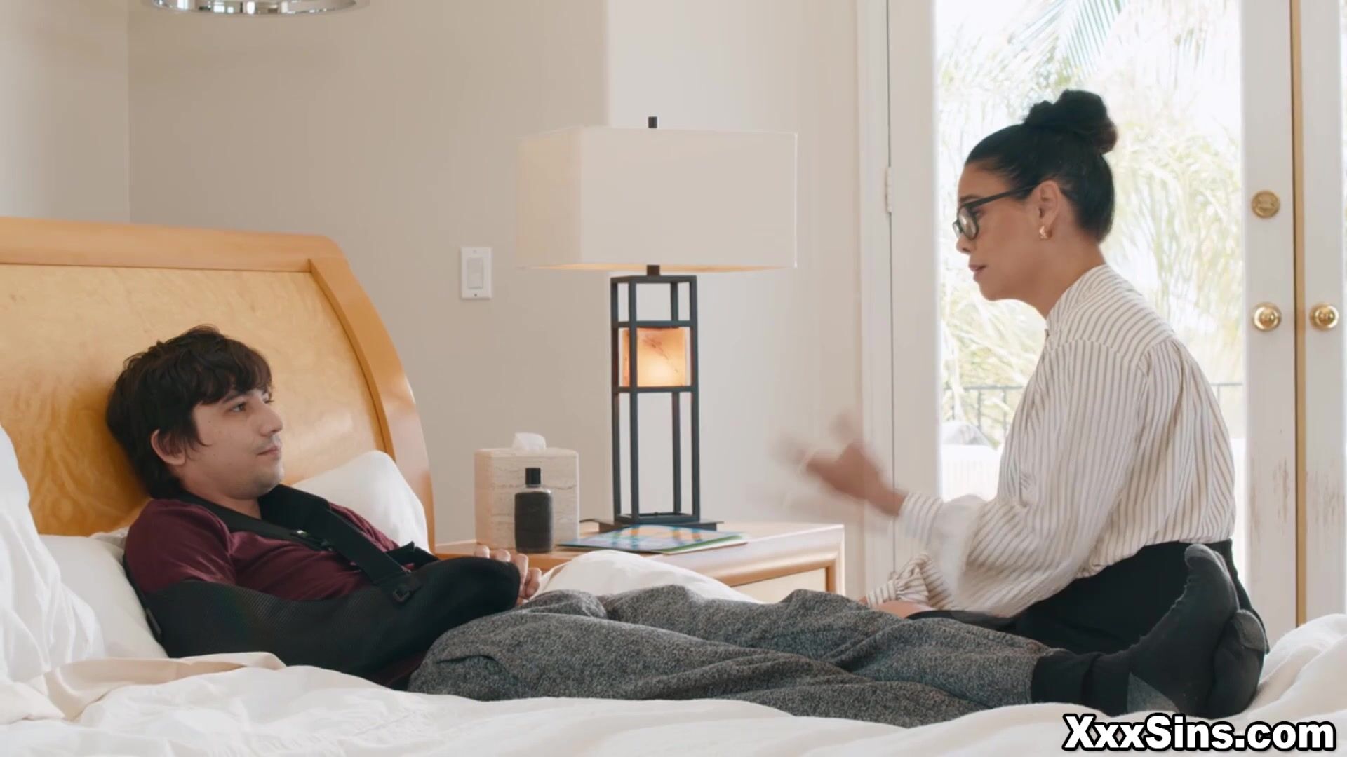 Dana considers it despite being flustered, saying she doesn't want to just leave him like this when he's clearly desperate. After some hesitation, they agree Dana will jerk him off, but they must keep it a secret