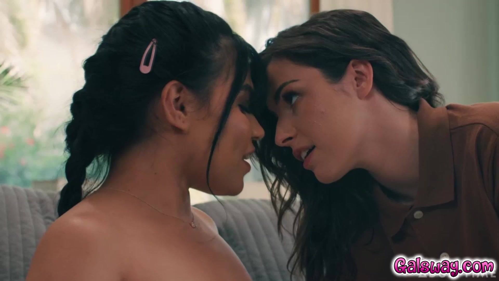 It's revealed that the person on the phone is their pastor, checking in about Penelope's baptism. Penelope instantly plays up being innocent again... while Summer Col naughtily continues to get frisky with Penelope while she's still on the phone