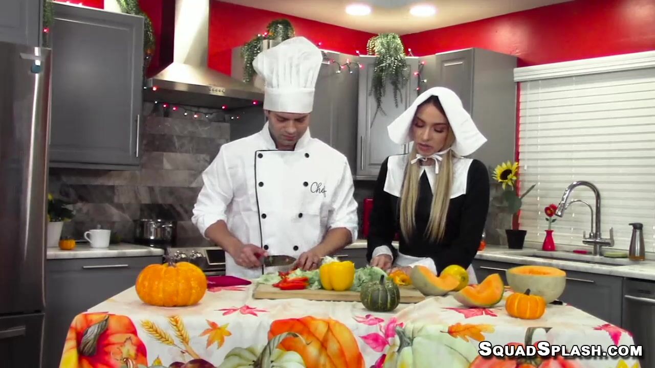 Pretty and horny blonde babe with small tits covered in oil Khloe Kapri gives oral blowjob on big cock and she gets hard anal banging in cowgirl from her head chef Nicky Rebel