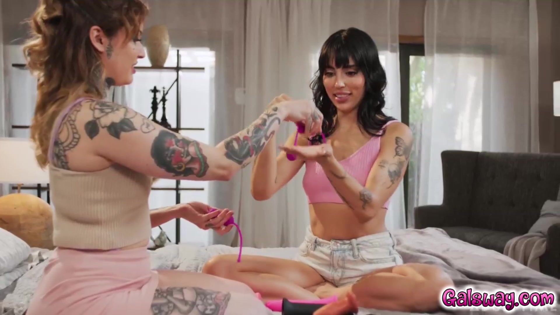Vanessa Sky is fascinated as Vanessa Vega sexily inserts various toys in her holes, including kegel balls, buttplugs, dildos, fists, and even the heel of a shoe! Vanessa Sky eventually gets so turned on by the ballsy party trick that she has to experience some of it for HERSELF