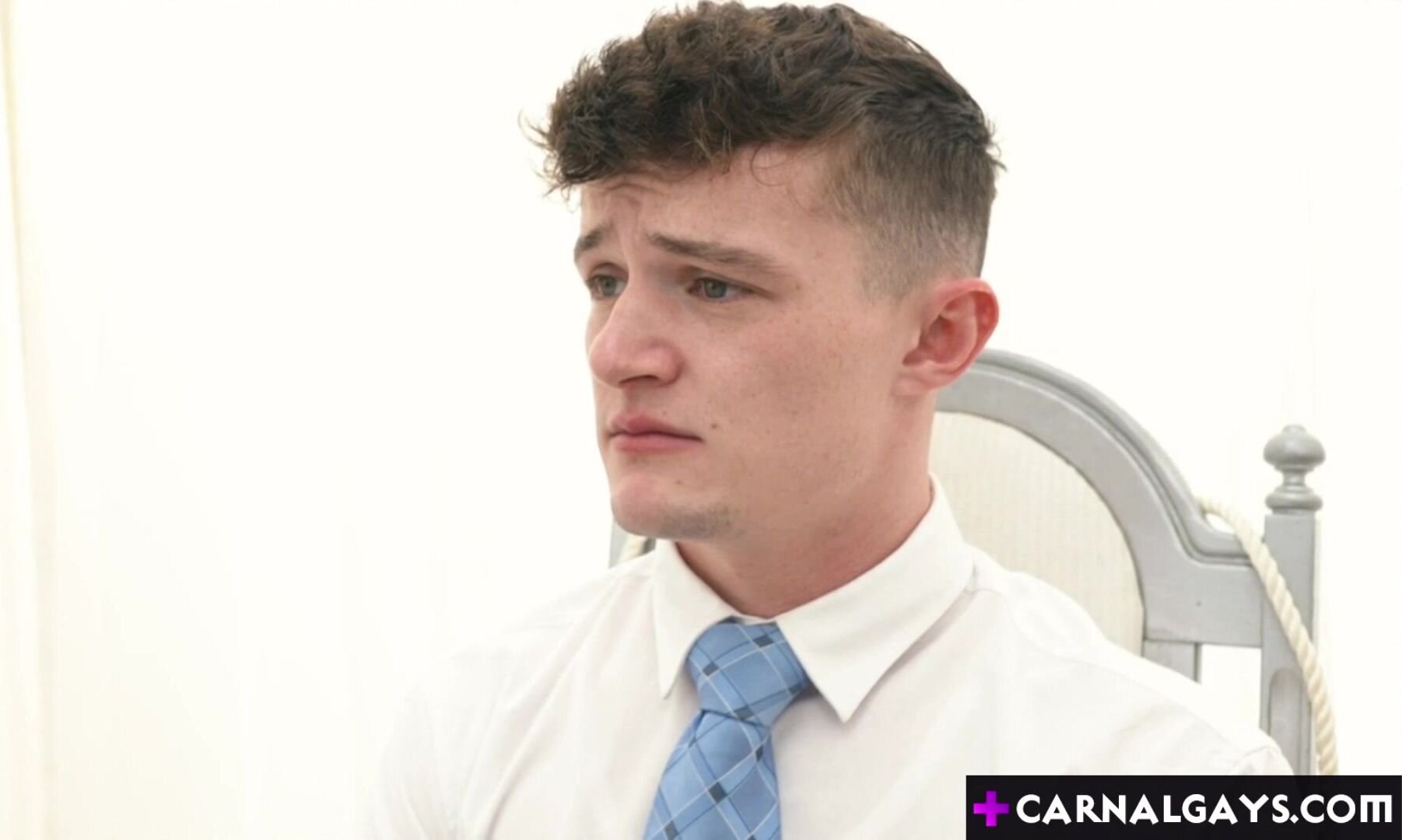 Felix Kamp spread Grant Ducatis legs wide and pulled him to the front of the chair so that his ass was exposed. I then pushed an oily finger into his hole. He was tight, but he clearly found this new sensation to his liking