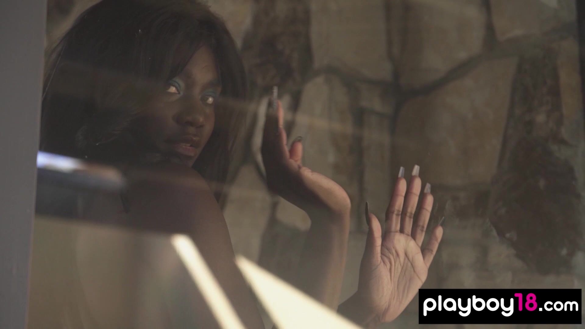 Passionate ebony beauty named Victoria Antoinette with natural perky tits is posing in her fancy lingerie with stockings The hot diva looks seductively into the camera then she flashes her tight black pussy for Playboy