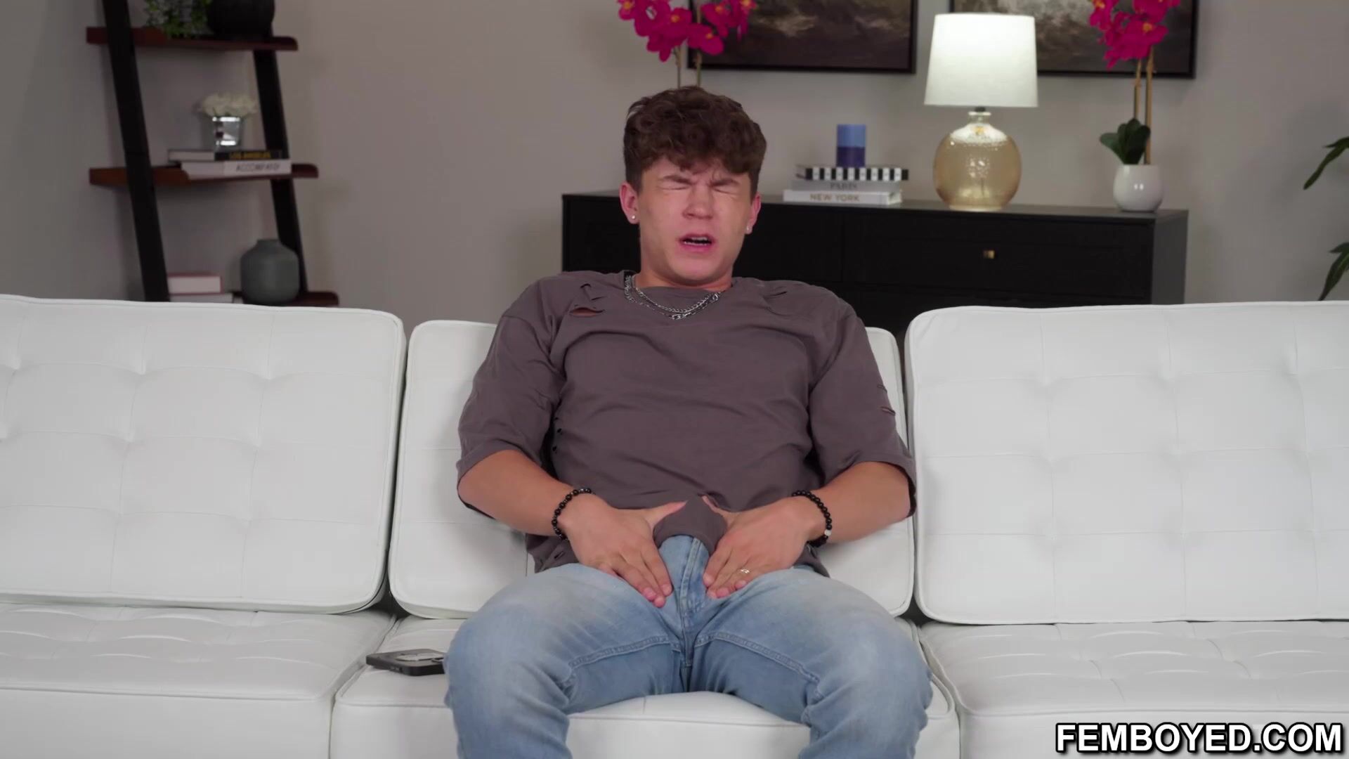Sage Roux and Ander Wolfe go further into the house where Sage greets his boyfriend Drake who has been waiting for them the mood is sexually charged as Drake and Sage look with arousal toward Ander who seems excited but still a bit shy
