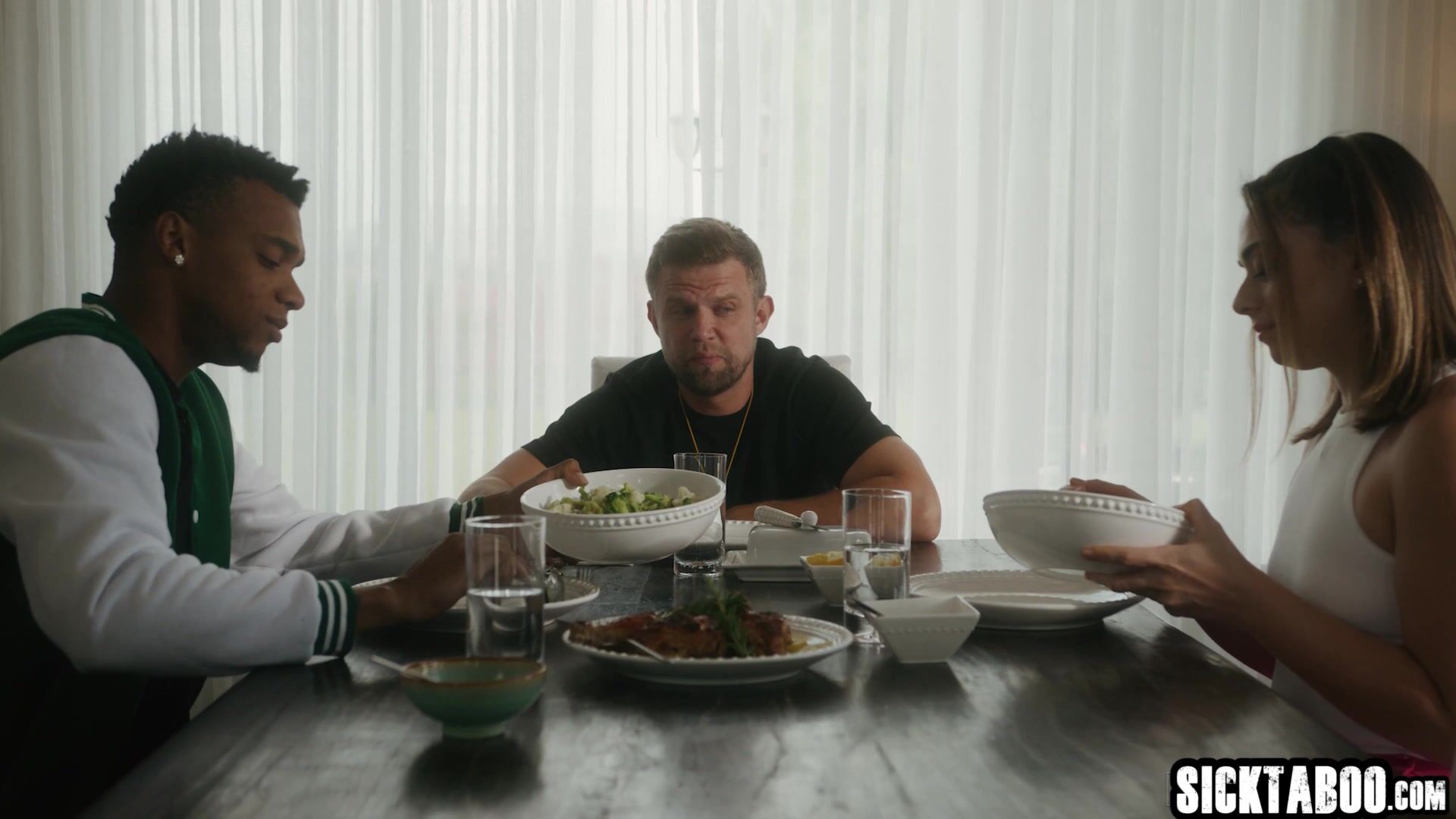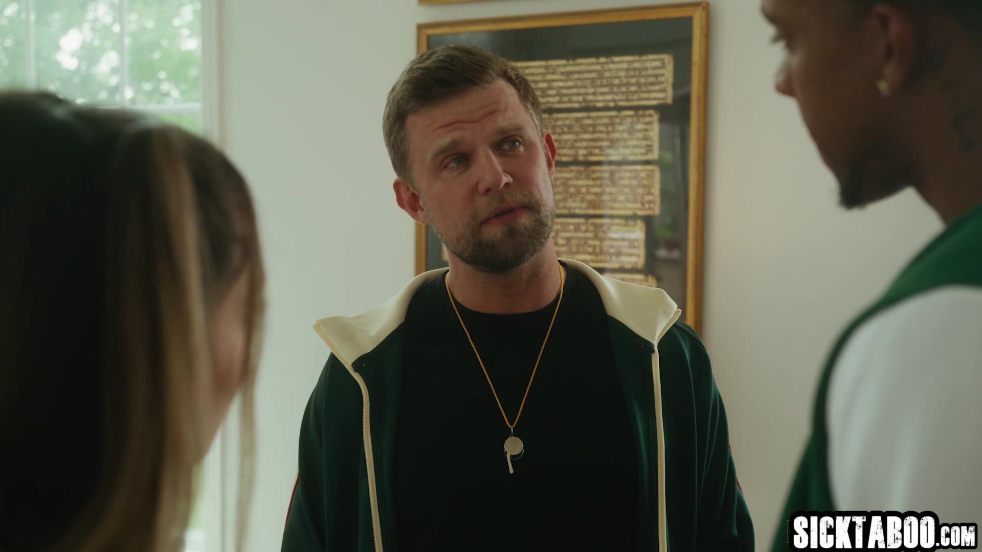 It is time for sexy big ass teen Sophia Burns to enjoy hardcore threesome with her boyfriend and her coach Horny teen grabbed big cock and gave a blowjob During hardcore doggystyle babe gave a blowjob and enjoyed rough threesome sex