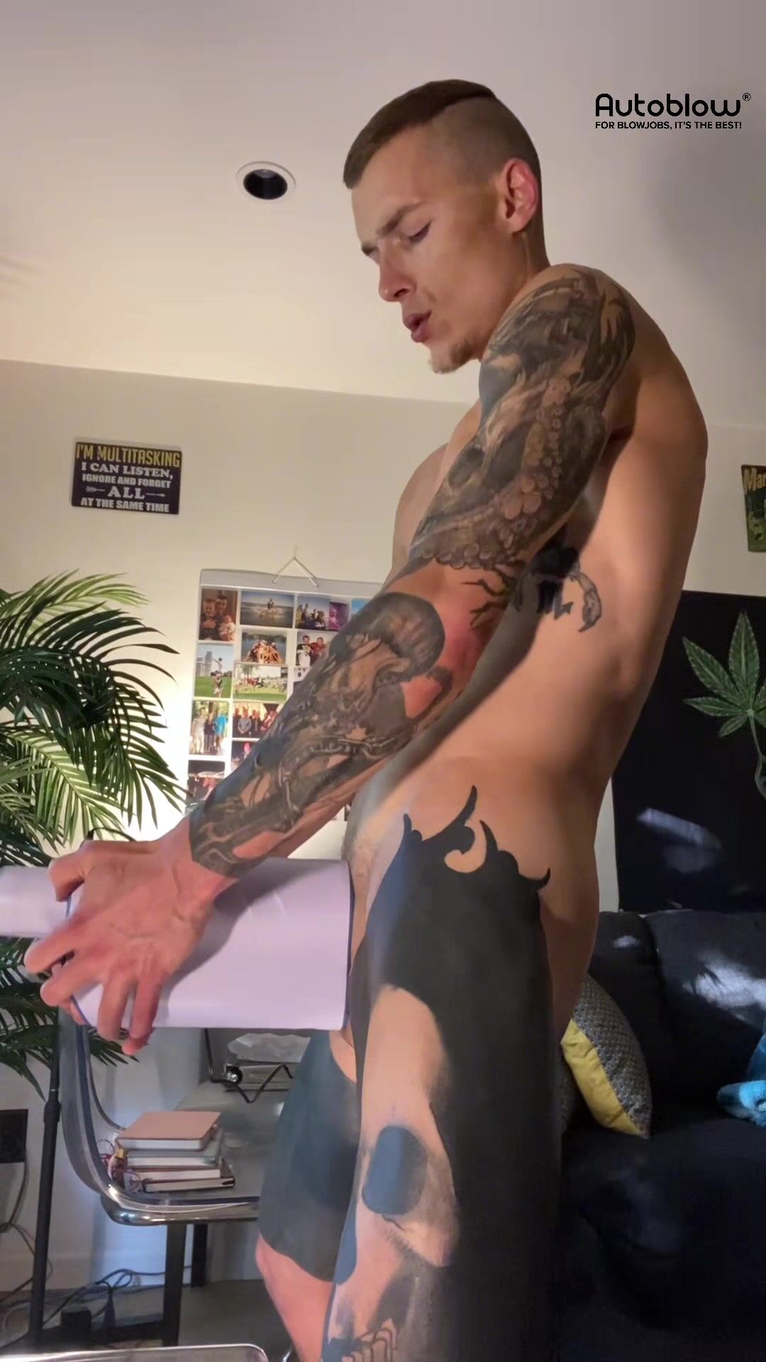Fit and tatted man Hoss Kado Elevates his Solo Blow Game With Autoblow Ultra. Watch the side profile of this man getting to enjoy a shattering full release with the help of Autoblow Ultra.