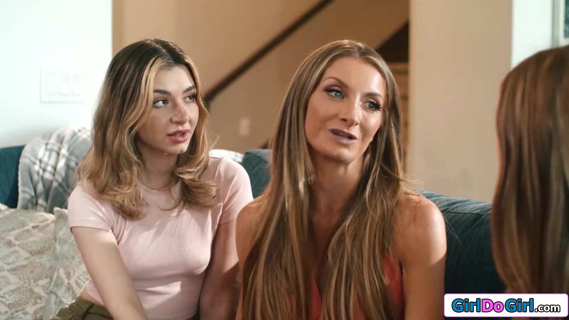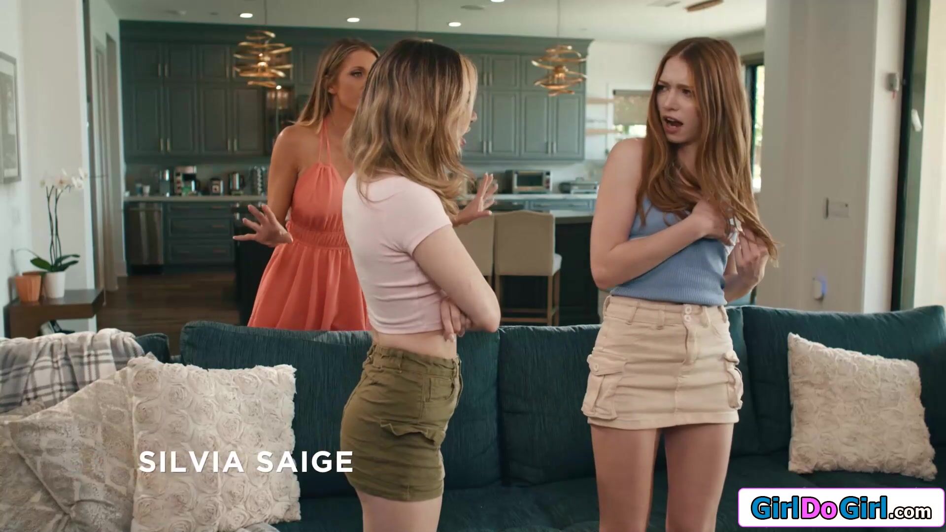 Busty stepmom Silvia Saige shuts her stepdaughters Demi Hawks and Myra Moans up by taking her tits out.The teens suck on the milfs boobs and Demi tastes her stepsisters shaved pussy while the cougar eats hers out.The petite babes give mommy an orgasm