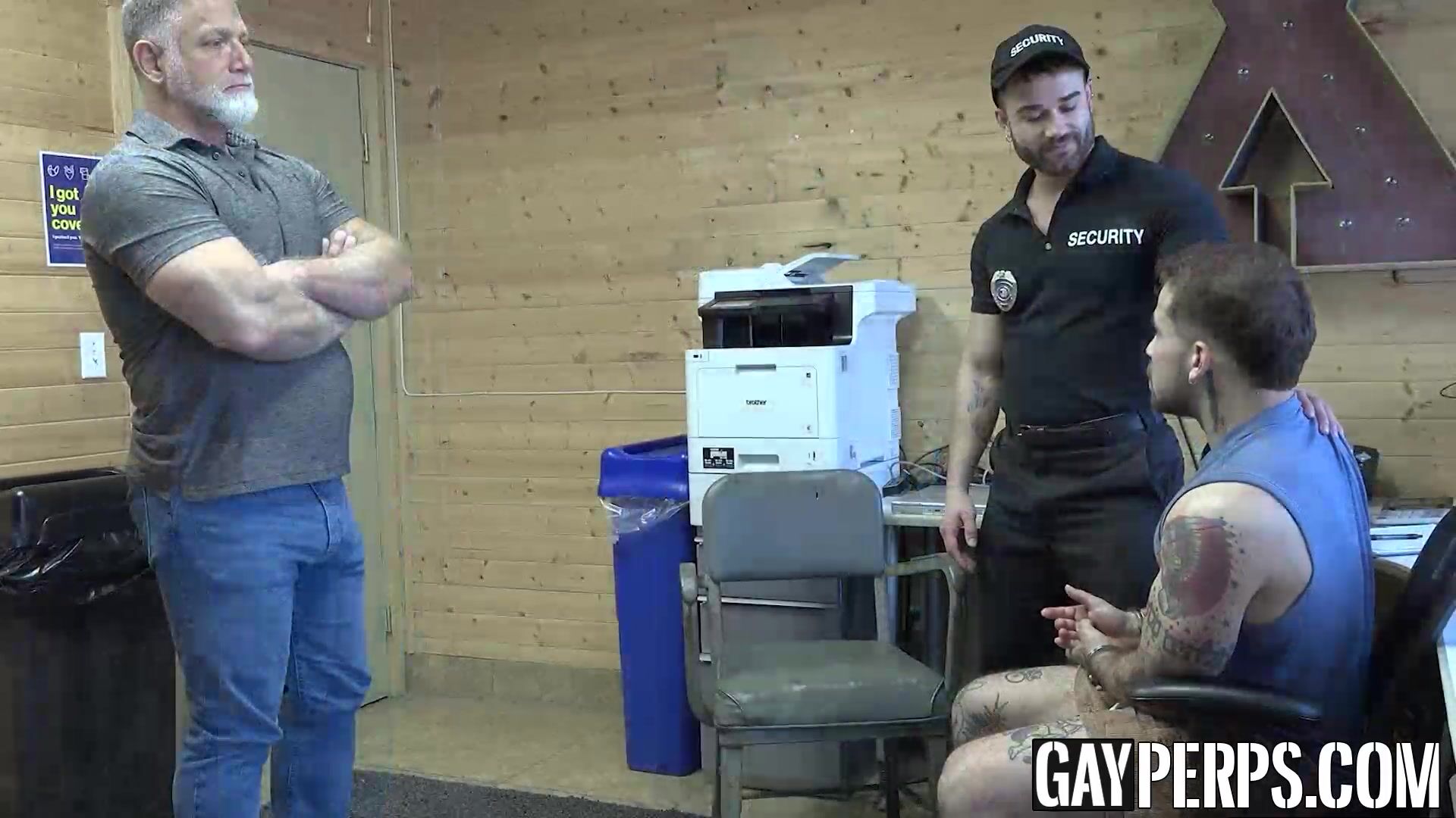 BoyPunish.com - Bearded and hairy security officer's hard, raw fuck with a young, eager perp