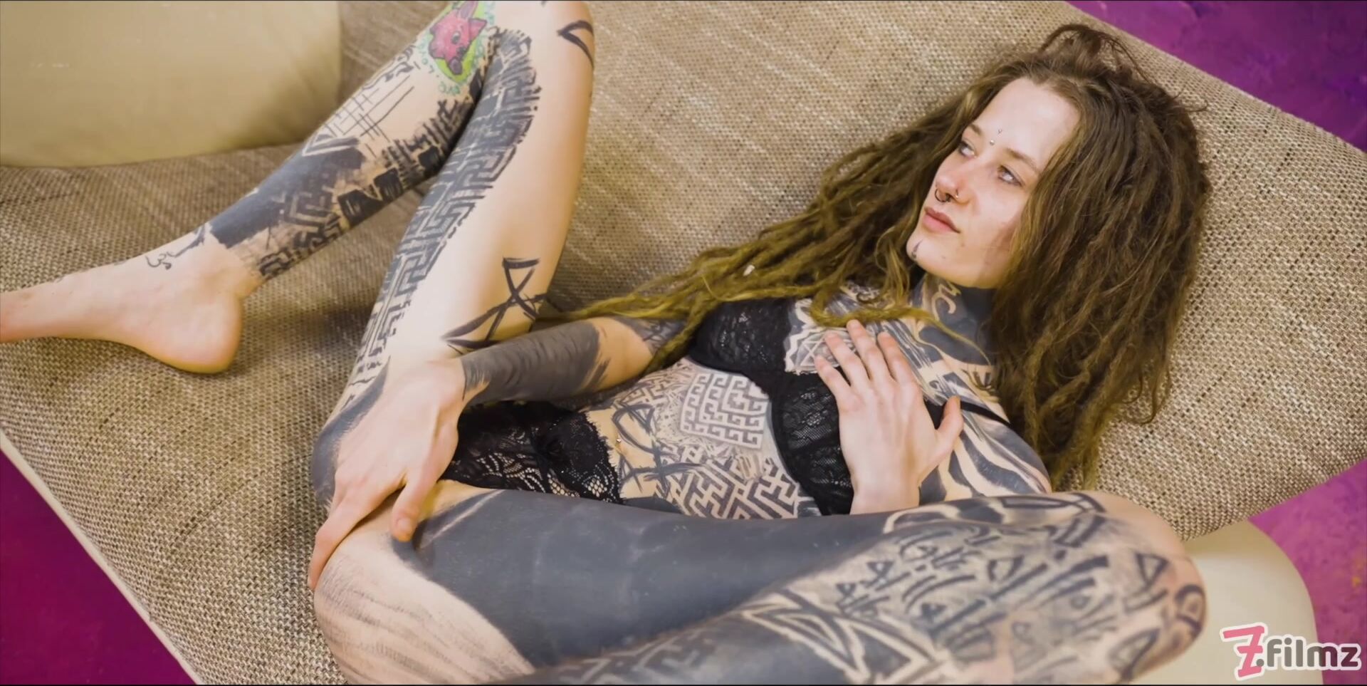 Curvy tattooed stepsister fucking in role play