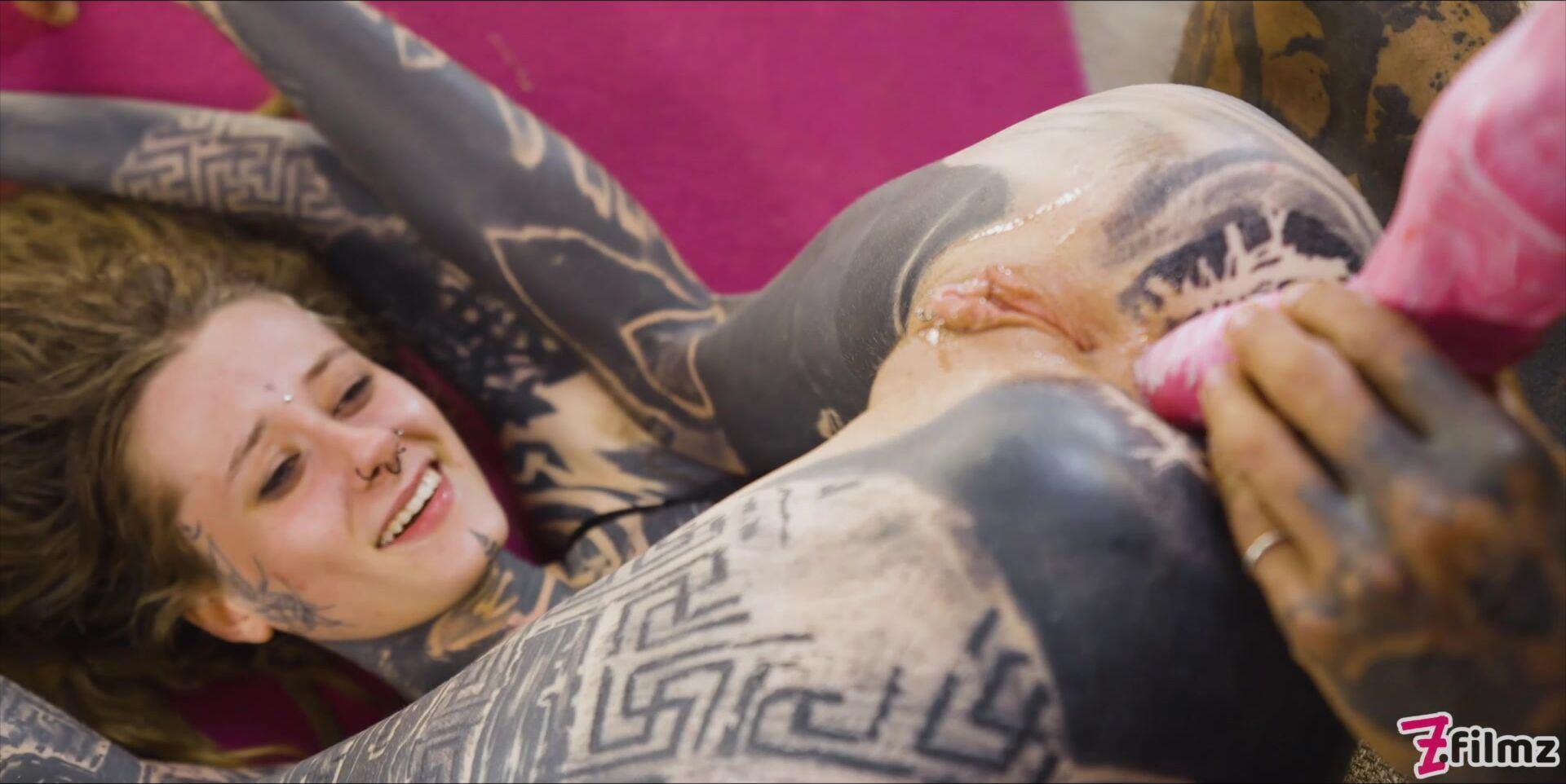 Tattooed Couple Hard Fucking With Creampie