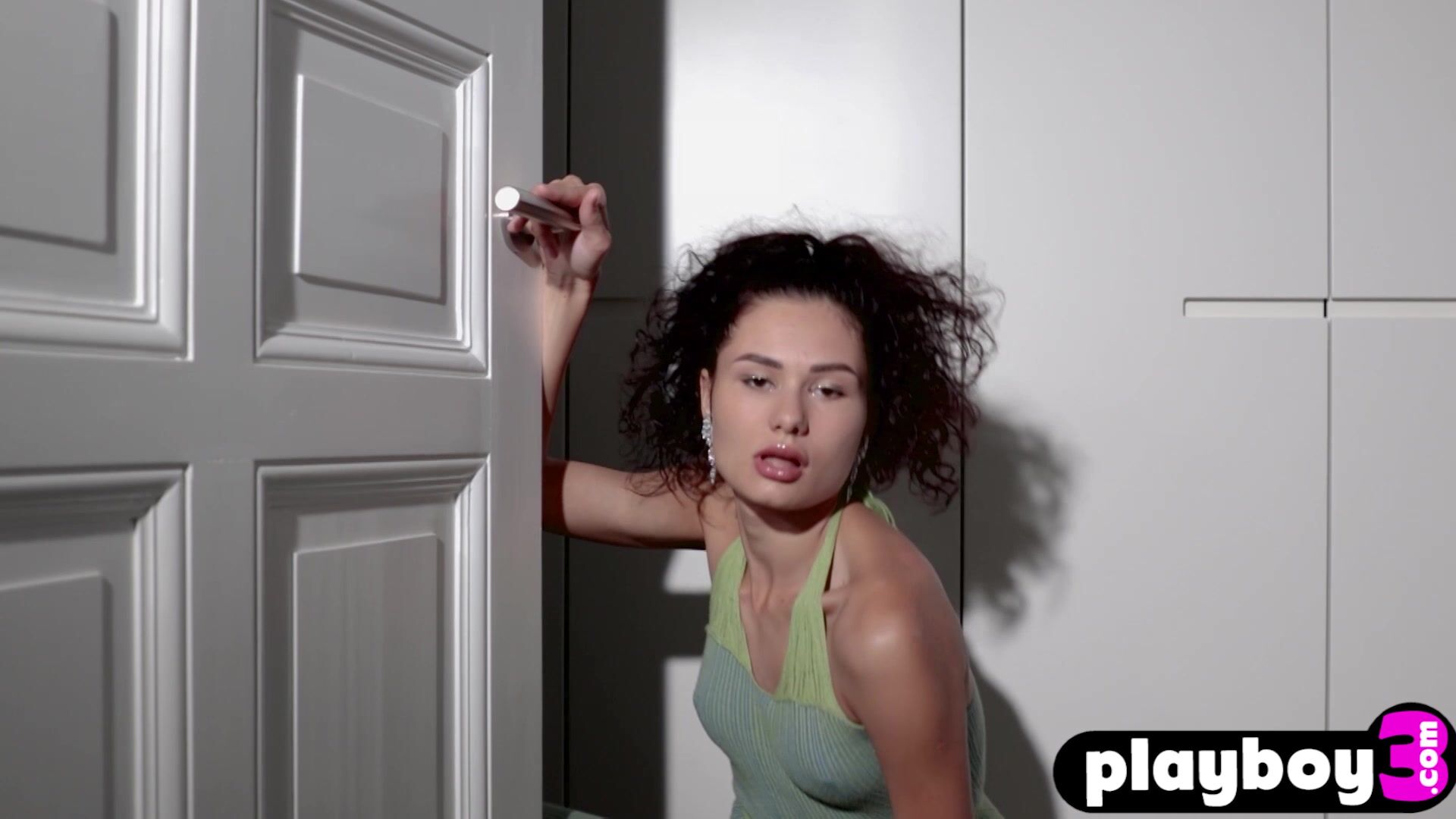 Curly Latina teen shows stunning body