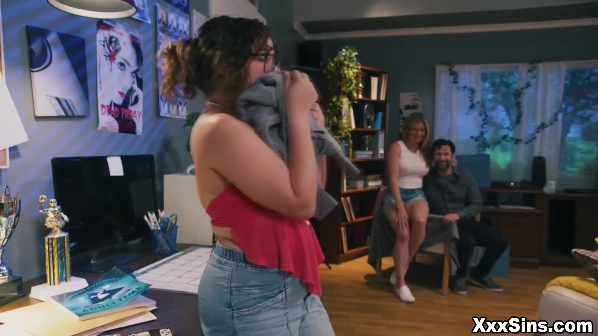 Tommy Pistol and Cory Chase, lure their boy's hot new wife, Leana Lovings, over to their house alone to seduce her. Leana is surprised but also turned on by how bold and forward her parents-in-law are, which leads to her delightfully giving in