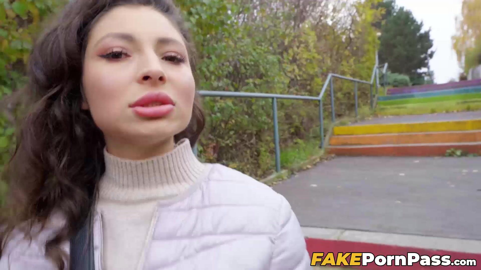 Stunning Helina Dream drops on her knees to swallow my cock before doggystyle position