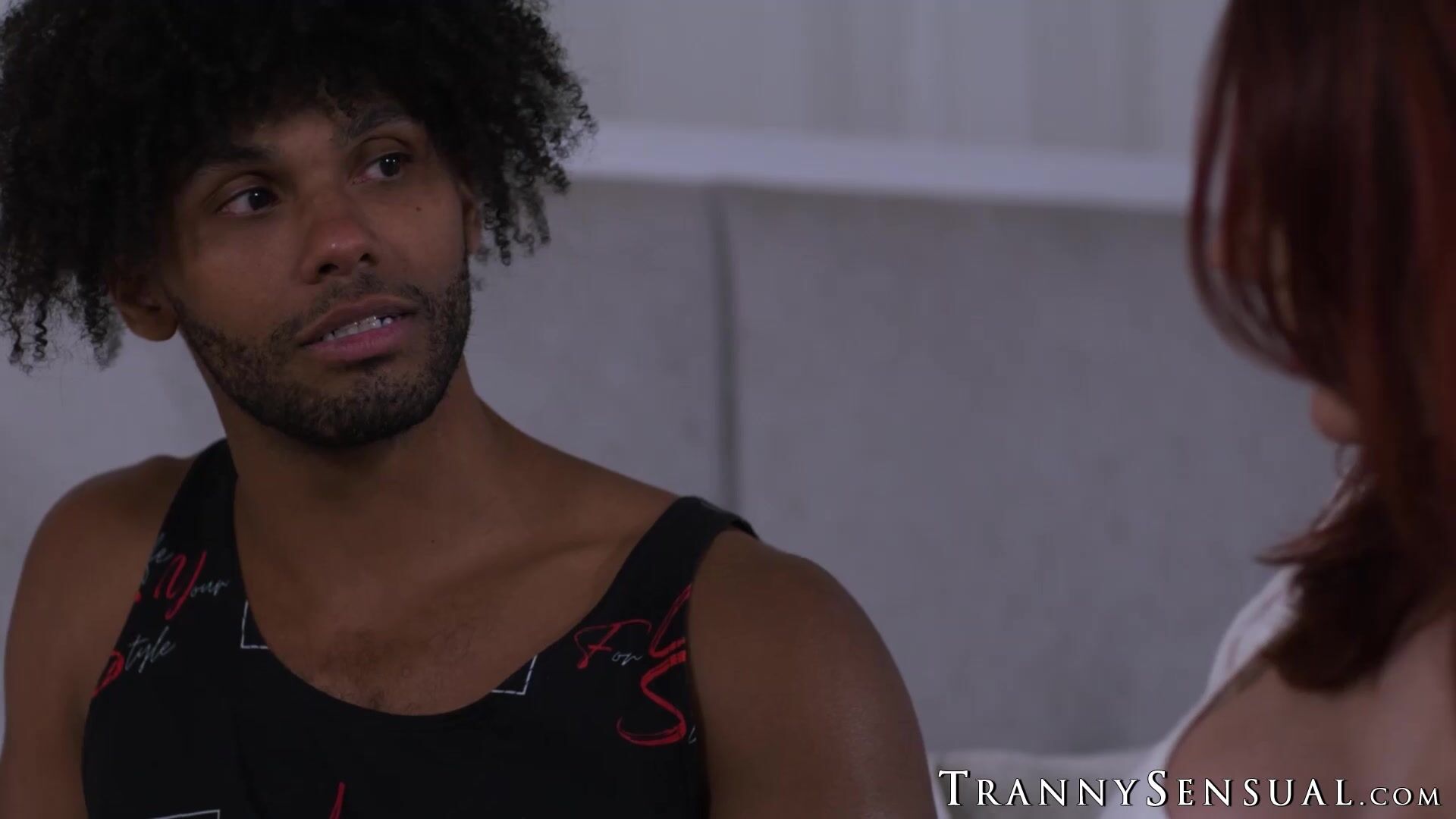 Redhead shemale Ariel Demure receives blowjob before drilling her black stepson