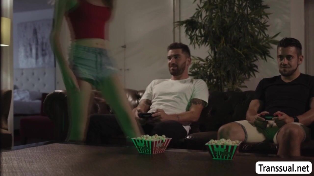Perv dude bareback fucks friend Tgirl girlfriend
