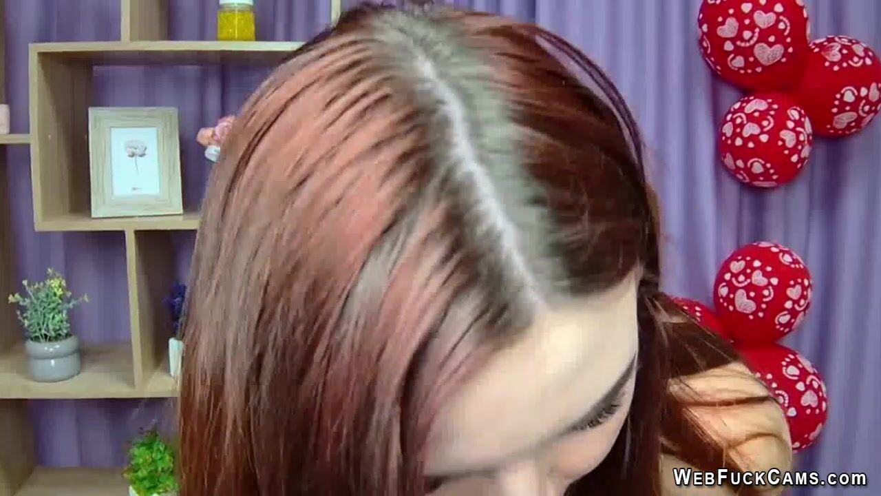 Redhead with big tits loves playing on webcam