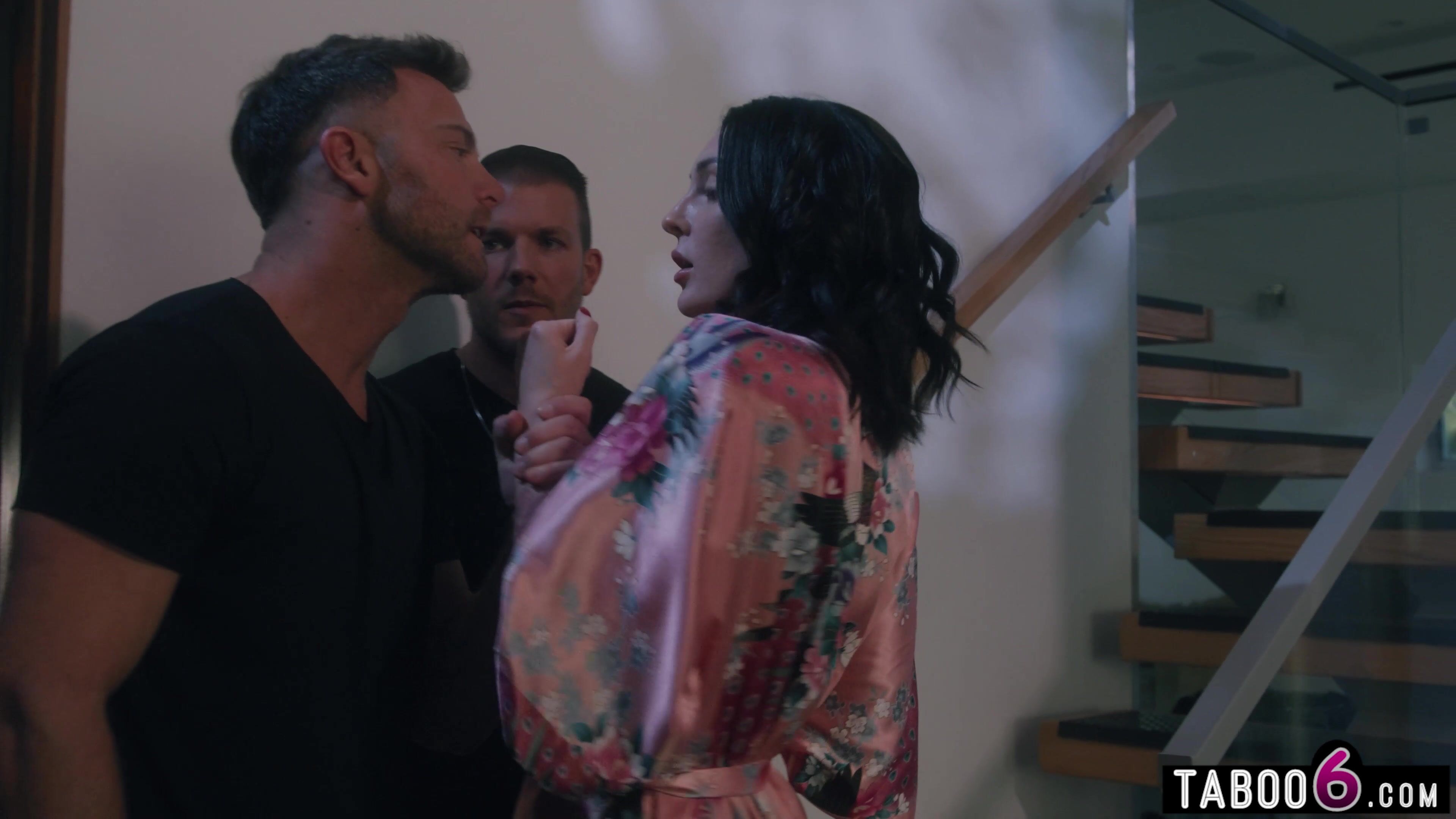 Wife Charlotte Sins fucks husband Codey Steele and his best friend Seth Gamble to prove her loyalty because they had to make sure she kept silent after overhearing them in the middle of the night! She knows too much now!
