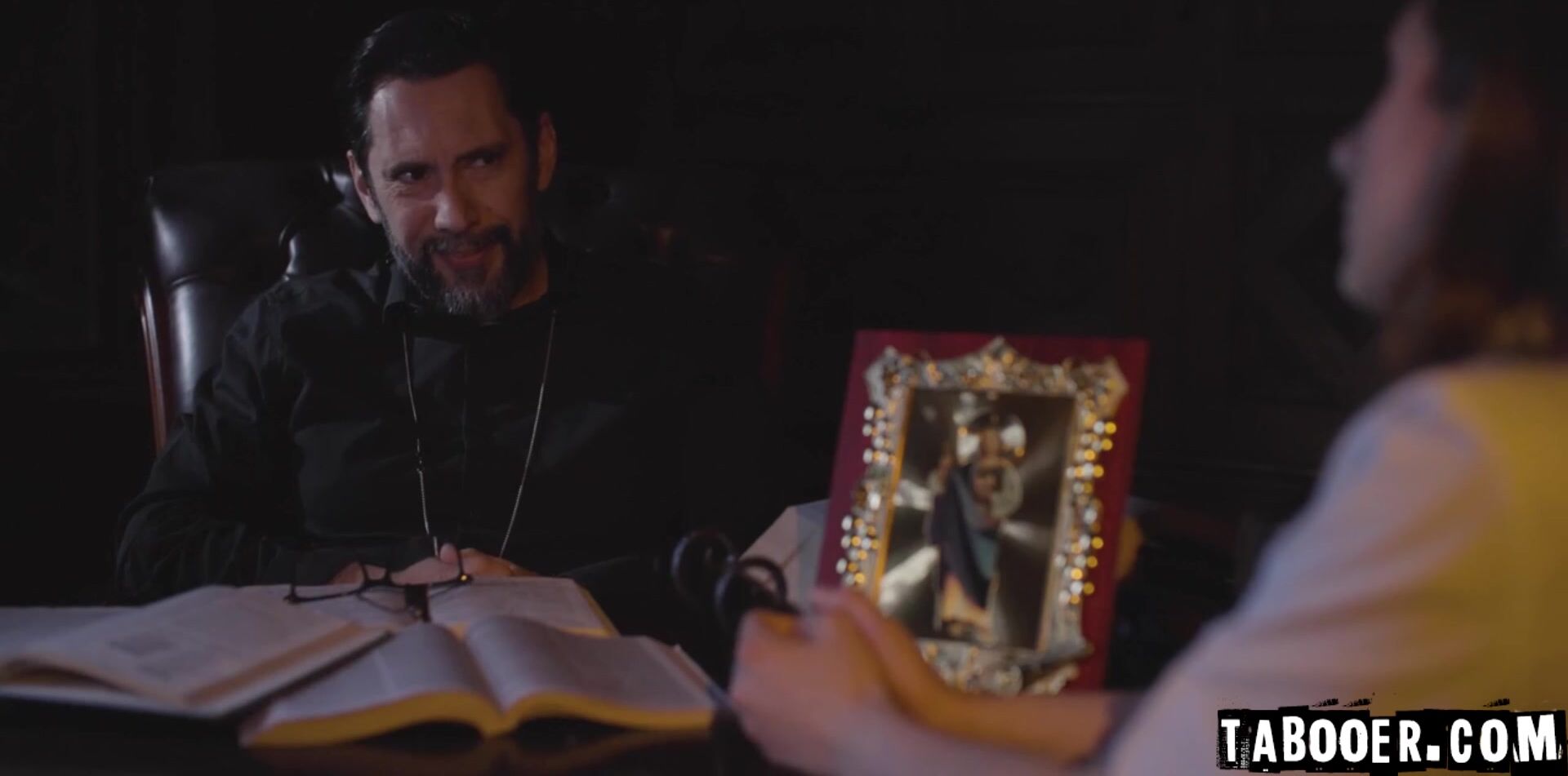 Belle continues to tempt him, saying that God would forgive them if they strayed just once. The priest gives in and agrees to fuck Belle in the ass, which she secretly knew he would... and soon enough, the priest will find out what else Belle knows about him