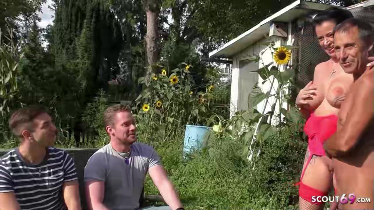 Real Outdoor Garden Gangbang with Big Boobs German Mature Dacada and Strangers