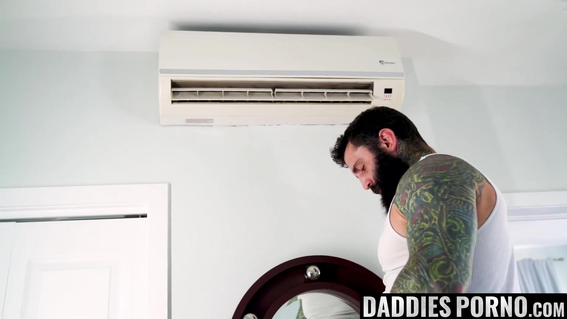 During the sweltering heat of the summer DILF seduces the stepson while he is in the shower and fuck him on the back