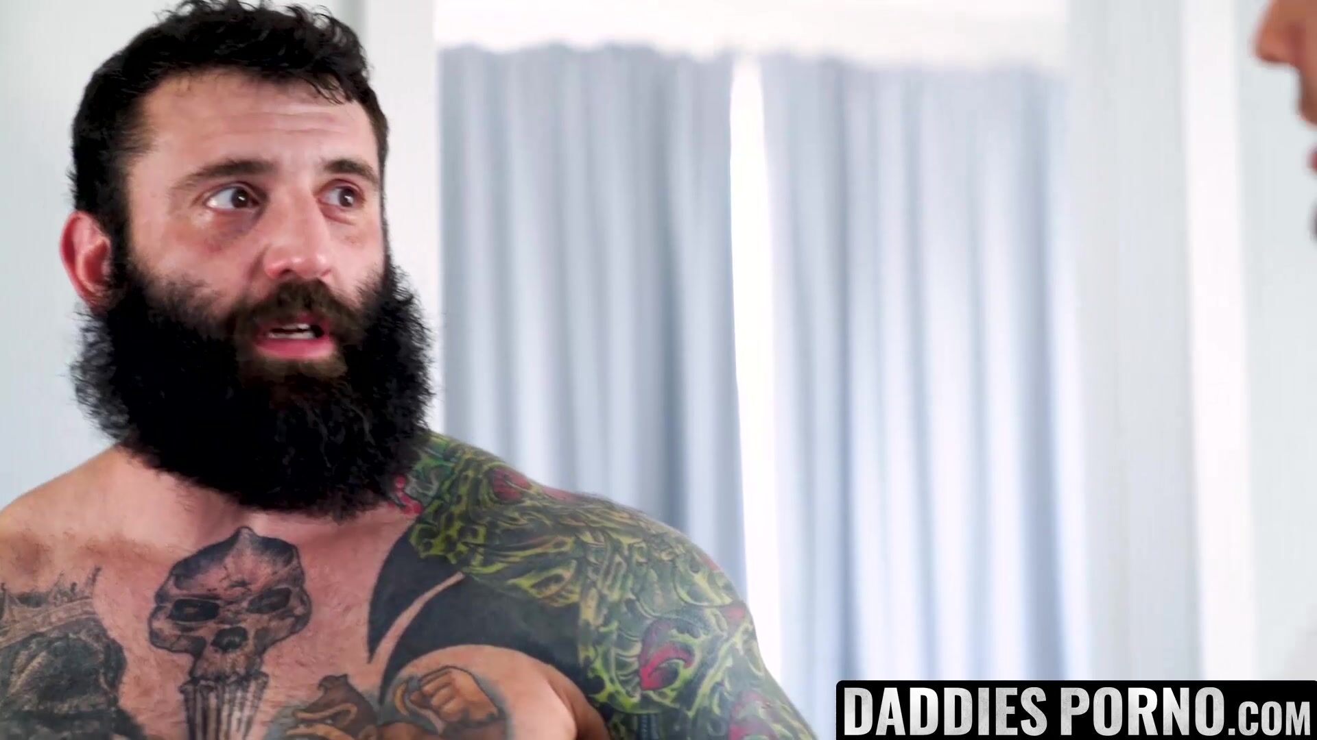 DaddiesPorno.com - Tattoed dadbod surprised stepson with hot Halloween pumpkin