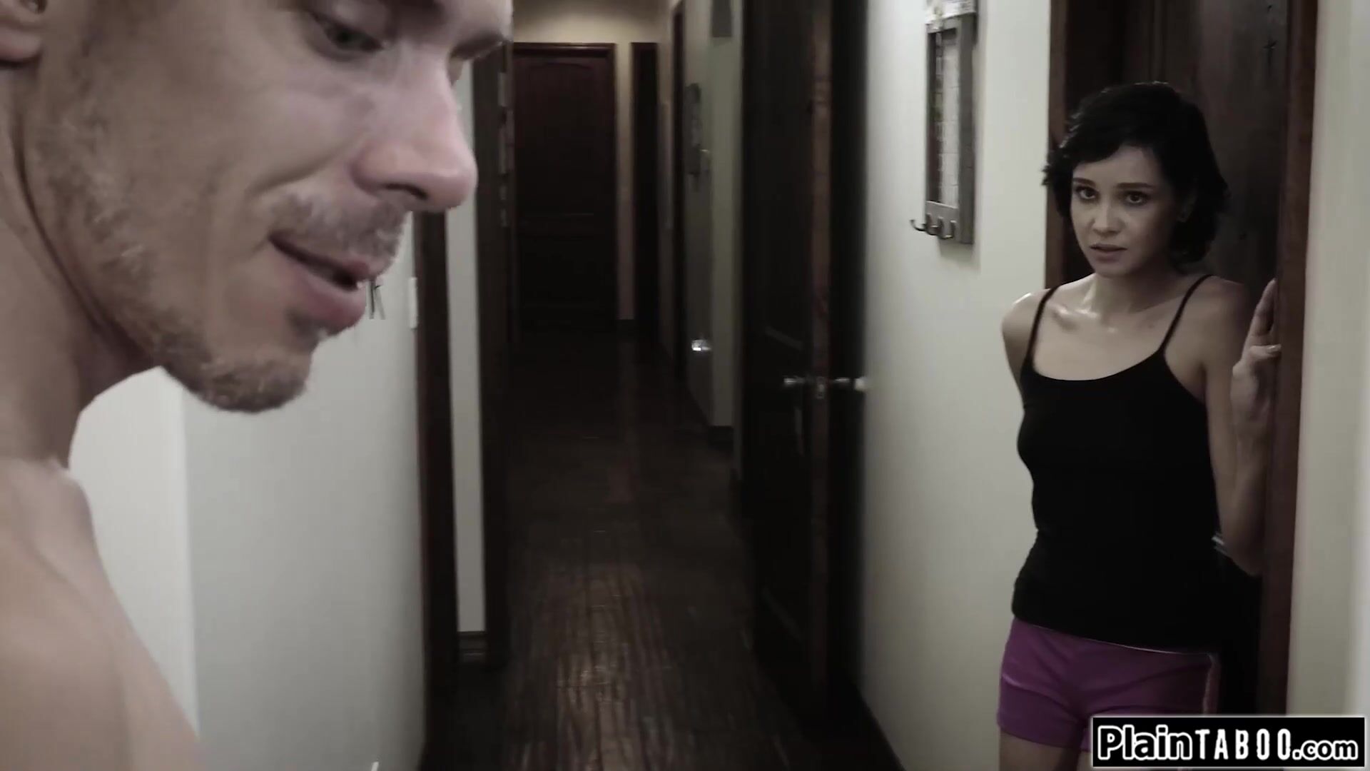 Petite teen babysitter Cadey Mercury is shocked when she walks in on her boss jerking off.He will triple her rate is shes willing to pleasure him.He pulls her nipples while she wanks his big cock.The small tits virgin sucks cock and is pussy fucked