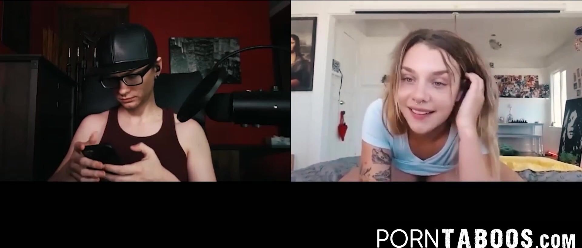 PornTaboos.com - Sexy Athena Faris' webcam pussy play teases her bald stud captive