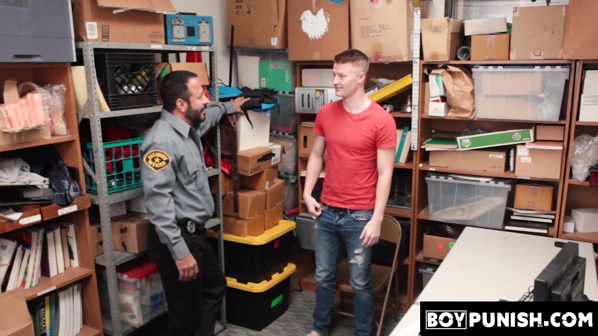 BoyPunish.com - Bearded security officer's intense pounding of a young thief's tight, eager ass in a steamy scene